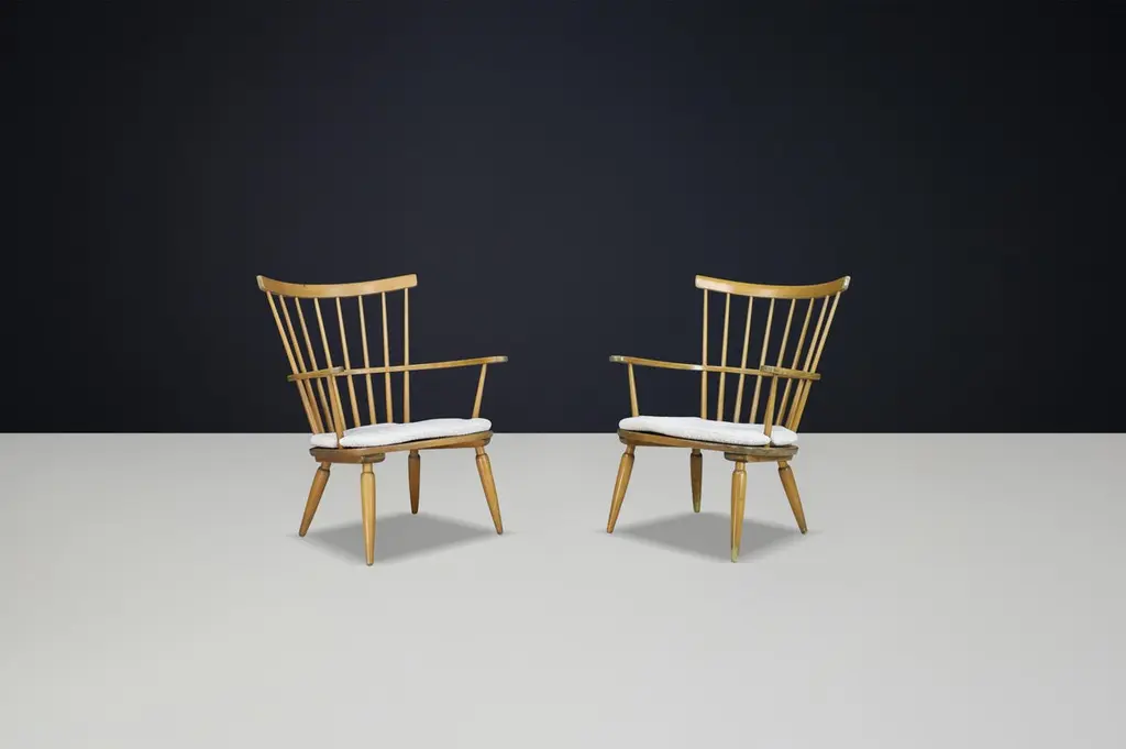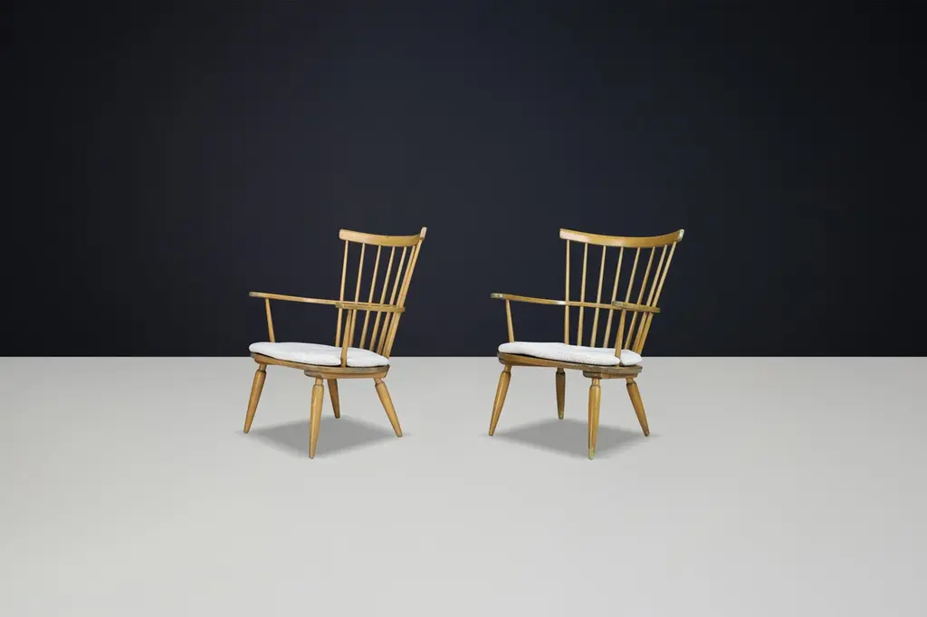 Midcentury Armchair with New Boucle Cushions by Franz Schuster, Austria, 1950sThis Austrian armchair is executed with beechwood and re-upholstered boucle fabric seat designed by Franz Schuster and created in the 1950s, Austria. The typical Franz Schuster characteristics are clearly present. A timeless piece of furniture which fits to antique and modern design. Playful, bold curves and lines and fine material. This armchair would make an eye-catching addition to any interior such as living room, family room, screening room or even in the office. It also perfectly fits in a hospitality or corporate location like a boutique hotel lobby, cocktail bar, members club or in a luxury boutique. Patina on wood parts, wood in good shape.When you choose for used mid-century design, you use what is already there, making it sustainable. You may not give the furniture a second, but even a third or fourth life. Mid-century design furniture is often a high-quality product that lasts several lives for a reason. Some furniture has a rich history, and the story is still visible or tangible with some. The signs of wear give a glimpse into the previous owner's life. 4 available price per chair.