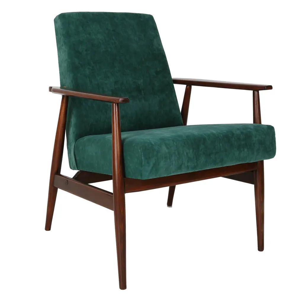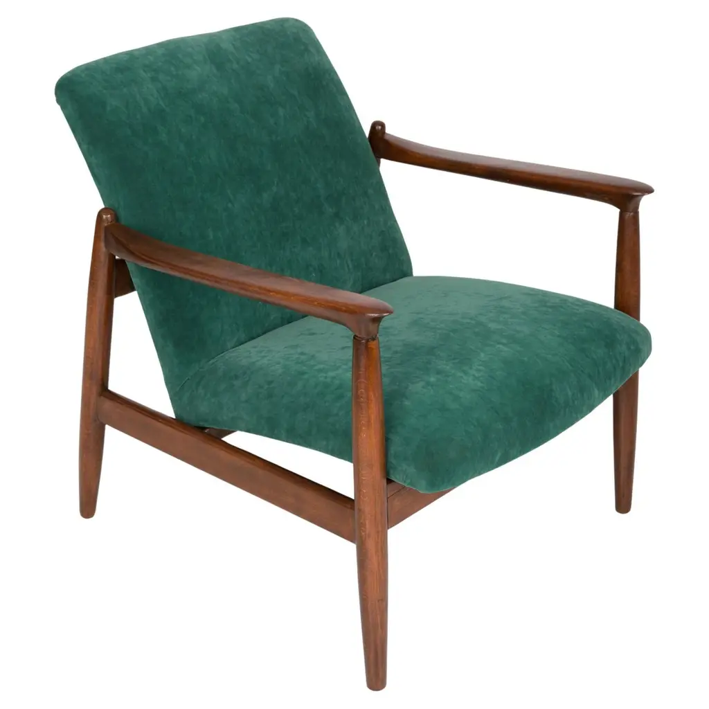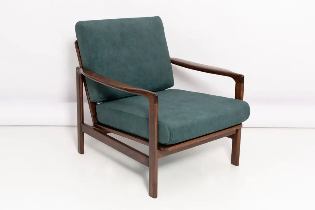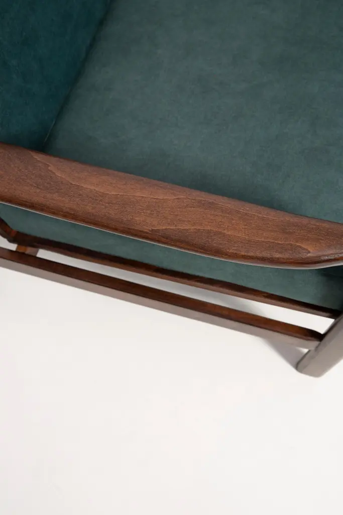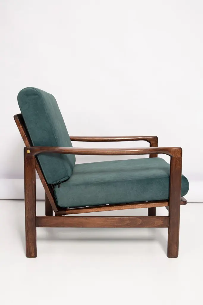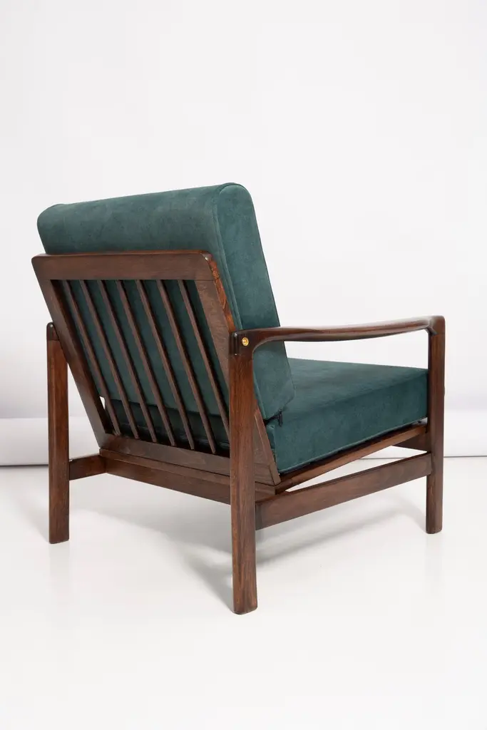 Midcentury Deep Green Velvet Armchair, Zenon Baczyk, Poland, 1960s