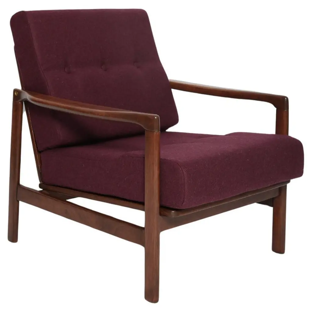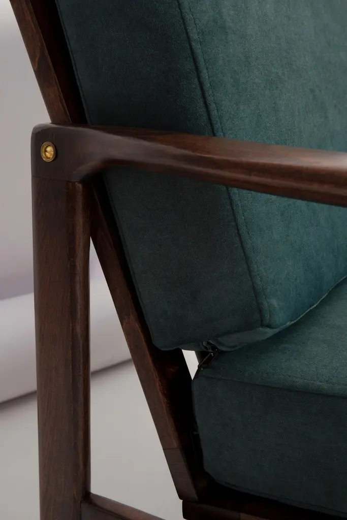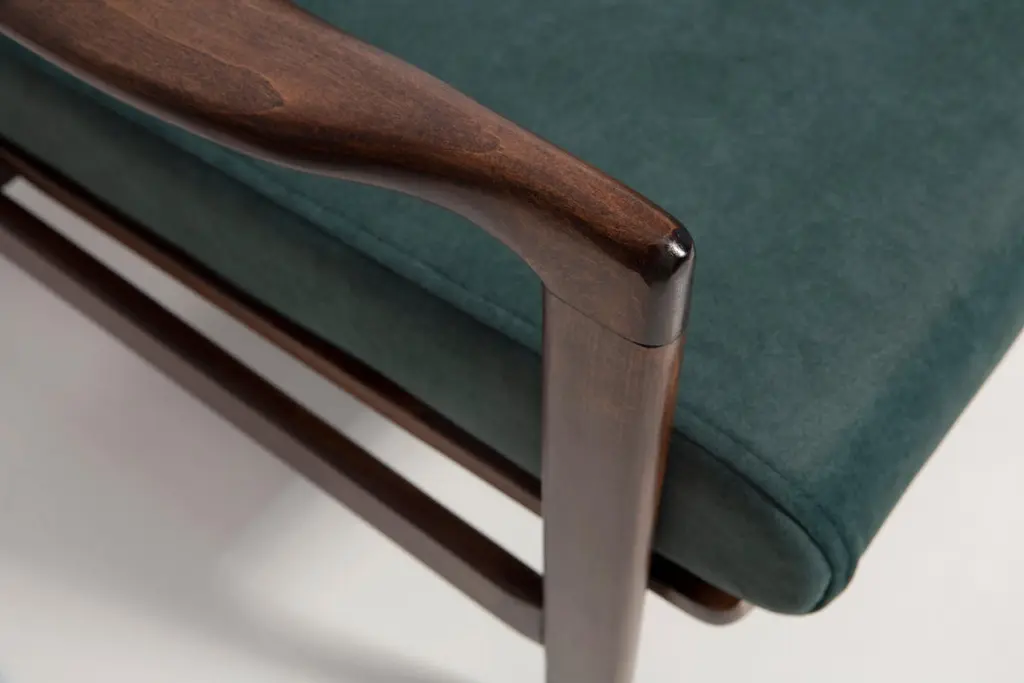 The B-7522 armchairs was designed in the 1960s by Zenon Baczyk, it was produced by Swarzedz furniture factories in Poland. This is original vintage armchair after renovation, they are not new! Furniture kept in perfect condition, after full upholstery and wood renovation. We used fabric color 37. Stabile and very comfortable armchair, dressed in high-quality velour. We can prepare this armchair also in another fabric and wood color. Please check the last pictures and ask for more informations.