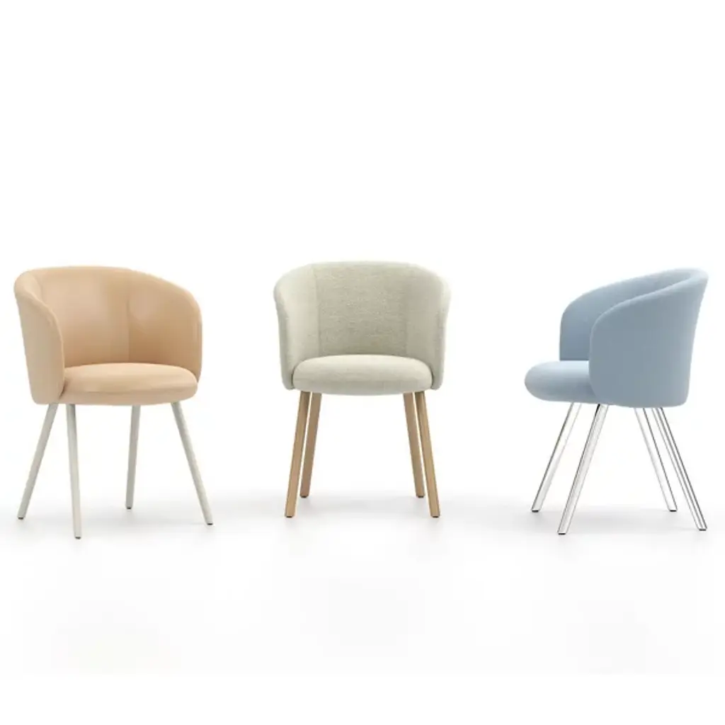 The Mikado Wood Base Armchair from Vitra combines elegance and comfort, making it a standout piece for any modern space. Its fully upholstered design delivers a plush, luxurious seating experience, while the backrest’s subtle movement promotes relaxation. A hidden mechanism beneath the seat allows the backrest to recline gently, adding a touch of personalized comfort. With its refined aesthetics and thoughtful functionality, this armchair is the perfect choice for elevating the style and comfort of contemporary interiors.