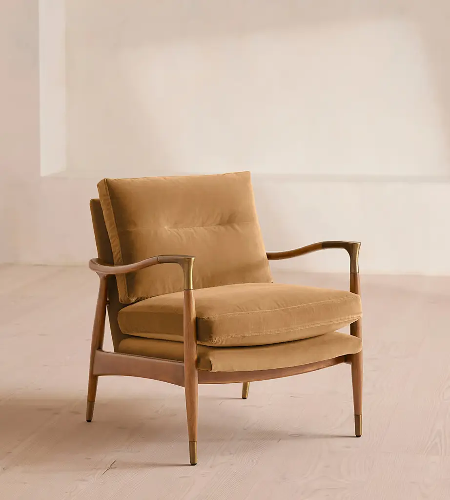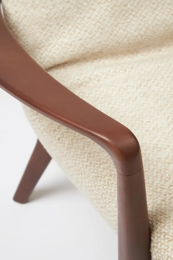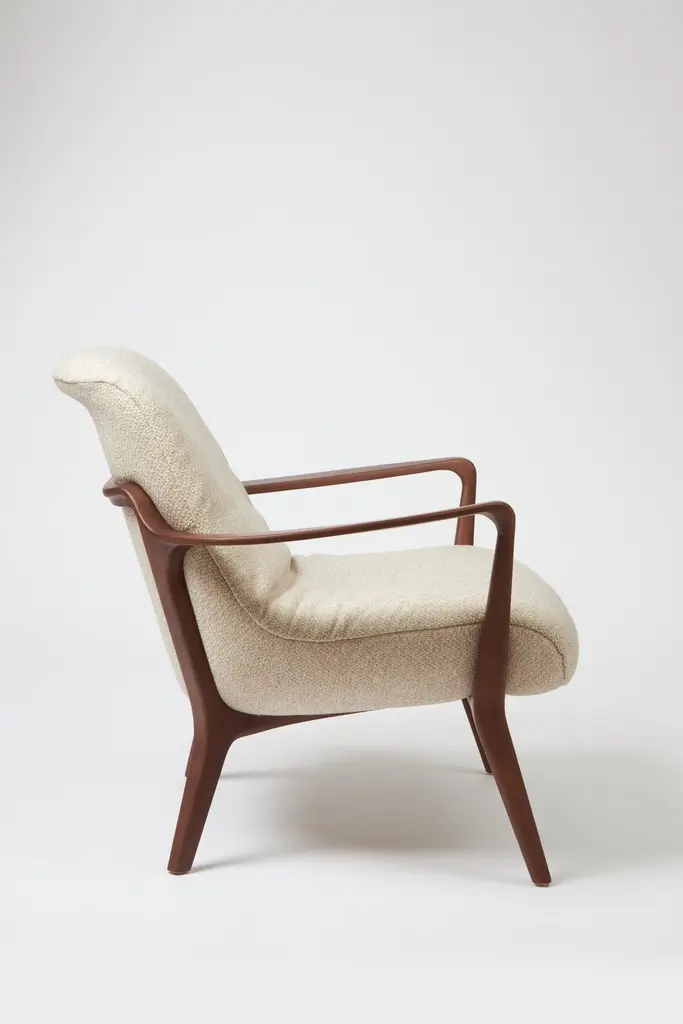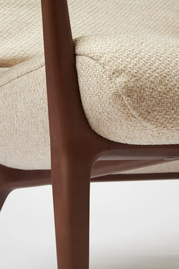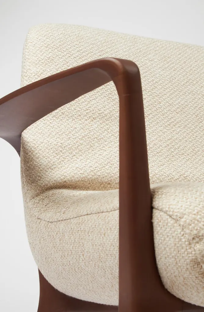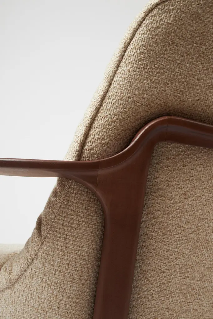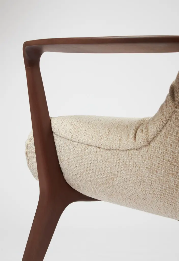 Minimal Style Insigne Armchair Sculpted In Walnut Wood Finish, Textiles Seating