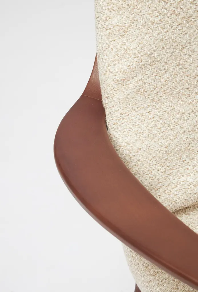 The "Insigne" armchair collection eloquently embodies the esteemed DNA, design philosophy and the cutting-edge craftsmanship of SIMONINI ®. Each flowing and uninterrupted line is meticulously arranged, creating a captivating counterpoint to the organically natured constructive elements that emerge from a deep and natural formal exploration. This exploration, in turn, blossoms from spontaneous movements occurring during the piece's development process.The intertwining of concepts results in a meticulously orchestrated collection, prioritizing supreme comfort for its users. The base, skillfully carved from solid wood, exudes a richness of details that harmonize to form a cohesive structural sculpture. This majestic base elegantly contrasts with the highlight: a soft and welcoming seat. The lightness of the upholstery and the foam composition introduce a casual and relaxed touch.Each piece in this collection boasts delicately balanced curves and an overall aesthetic that invites sociability and surrender to moments of cozy comfort and unparalleled relaxation.Comfort, as the core essence, is skillfully balanced with the "Insigne" line's unmistakable and distinctive structure. An invitation to dive into our realm of extraordinary design, where intellectuality and aesthetics converge to forge a seating and aesthetic experience that transcends the usual conventions.