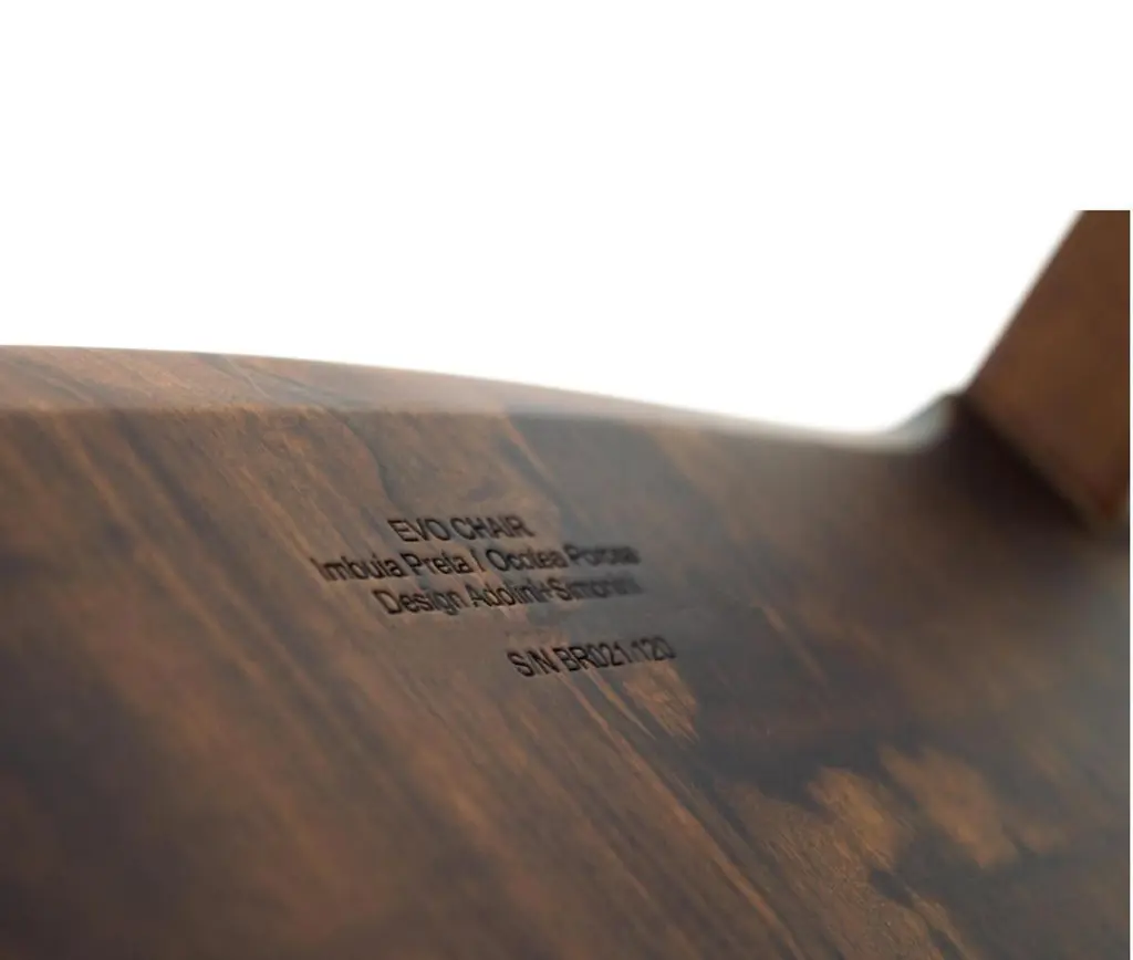 Evo Chair collection.Our EVO collection is based in the harmonic fusion between geometrical forms and the modern interpretation of wood archetypes. All elements that compose the chair are precisely engineered to input full hardwood blocks to a Hybrid 5-Axis CNC milling machine that carves and sculpt the wood with precision to achieve minimal thicknesses, transitions between elements and milimetricamente definition, every little piece of the chair passes in a array of posterior processes until a they are assemble together to create the final product, that contains precise and tangent junctions between pieces, that give life to a sturdy and durable chair that will live thru out many generations to come. Expect a stunning, elegant chair, designed with passion in a project that evolved with our studio story.We offer many Tauarí solid wood options and a back imbuia limited edition of 120 units, the black imbuia is a hardwood very difficult to find because it is an extinct wood species, so there is no more to extract since many years. Listing illustrates the tauari with arms versionWe use only high quality, premium woods, the, tonality and veins drawing vary from item to item, been a living material. Items are made upon order, usually take 20-30 days to dispatch depending on the order size this may vary. All shipping’s are insured, we follow all orders closely keeping our clientes informed of every update on the order. Any additional information about the product or anything you might need we are always available to help, you can reach us sending a message or calling in the 1stdibs platform.