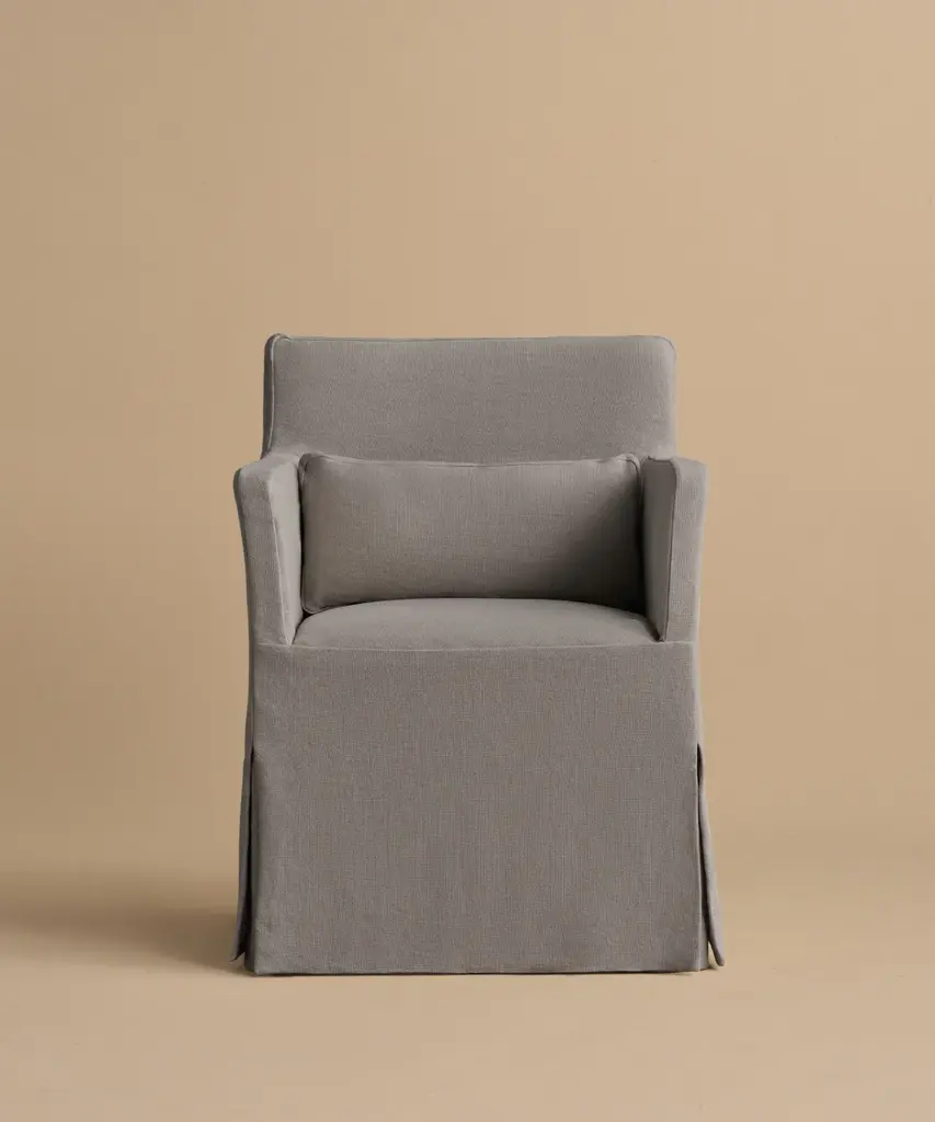 Miramar Chair Smoke Linen Elegant chair crafted from luxurious Belgian Libeco linen: 100% linen slipcover. Features feather down fill and foam core. Handmade in the USA, the Miramar Chair is where elevated ease comes to life. From your living room the the den, this piece is sure to be an instant favorite. For furniture purchases, please refer to our furniture inspection policy here, and for help styling this piece in your space, contact [email protected] for a complimentary consultation. CA Residents: Prop 65 Information