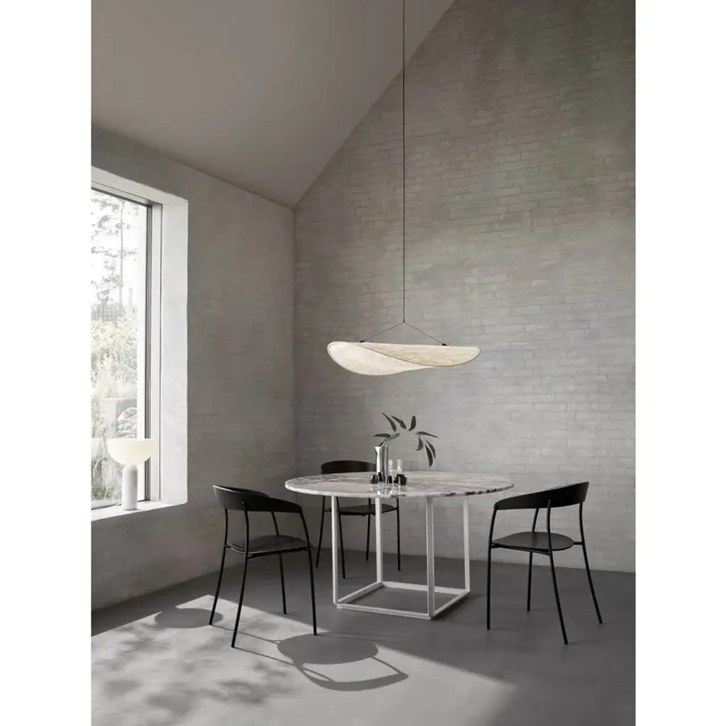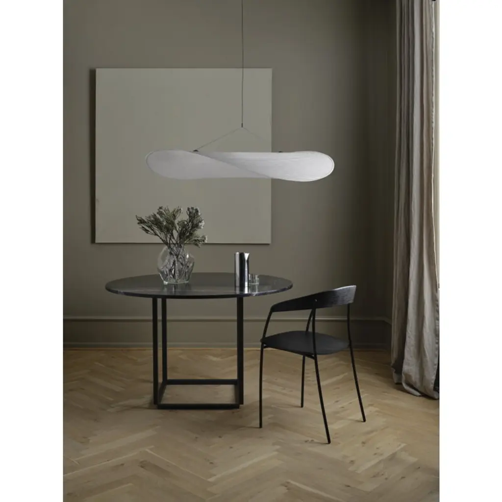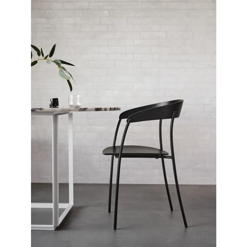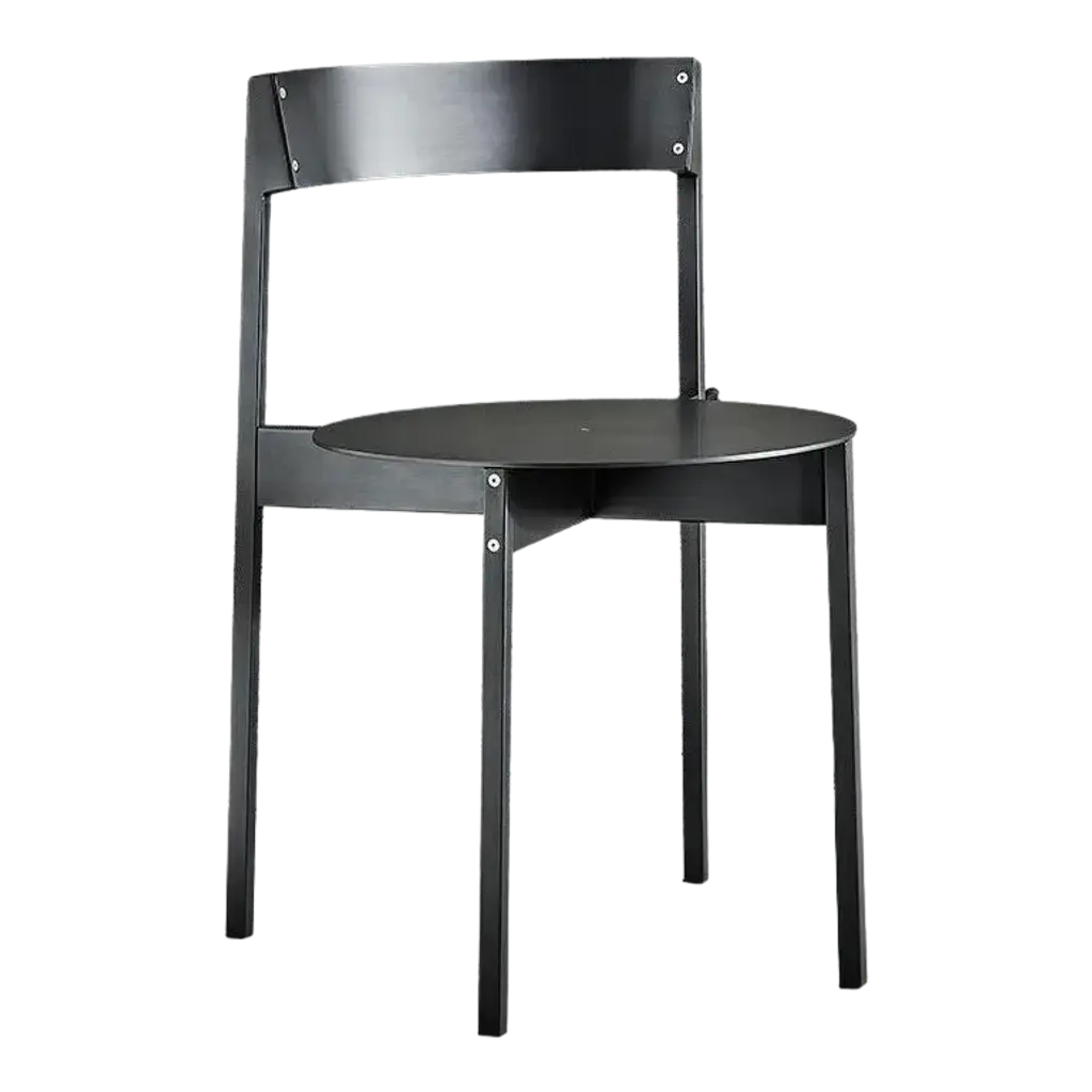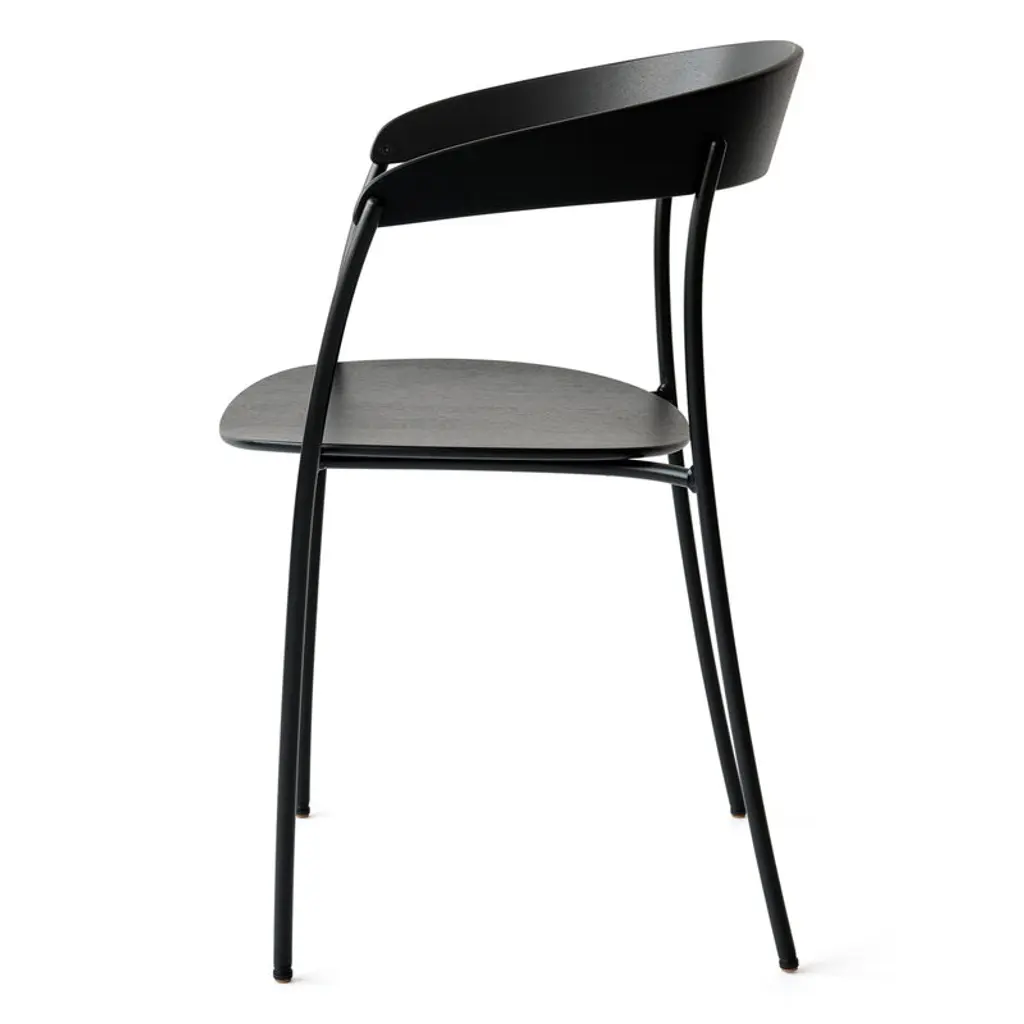 New Works’ Missing chair, designed by Regular Company, is a new elegant take on the classic stackable café chair, characterized by soft curves and thin lines. Comprising only a thin steel frame and two pieces of timber forming the seat and back, the refined chair is stripped of anything unnecessary – almost like a sketch that has suddenly become three-dimensional. Simple yet compelling, the Missing chair has a subdued character that is still ineffably distinctive.