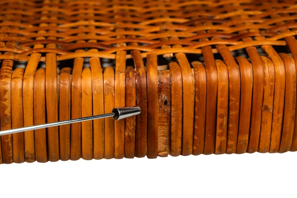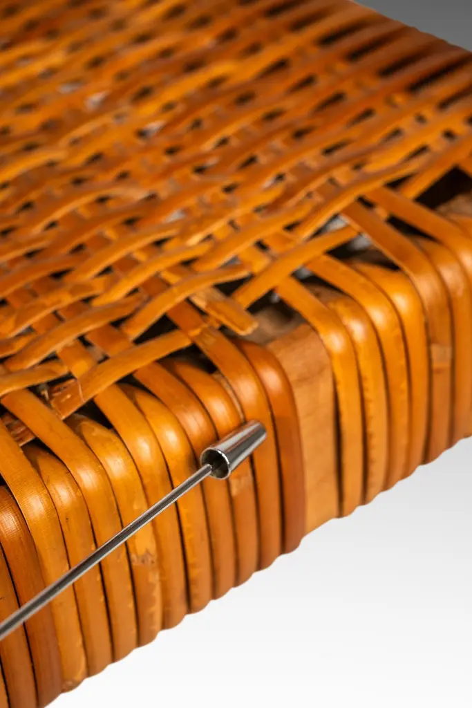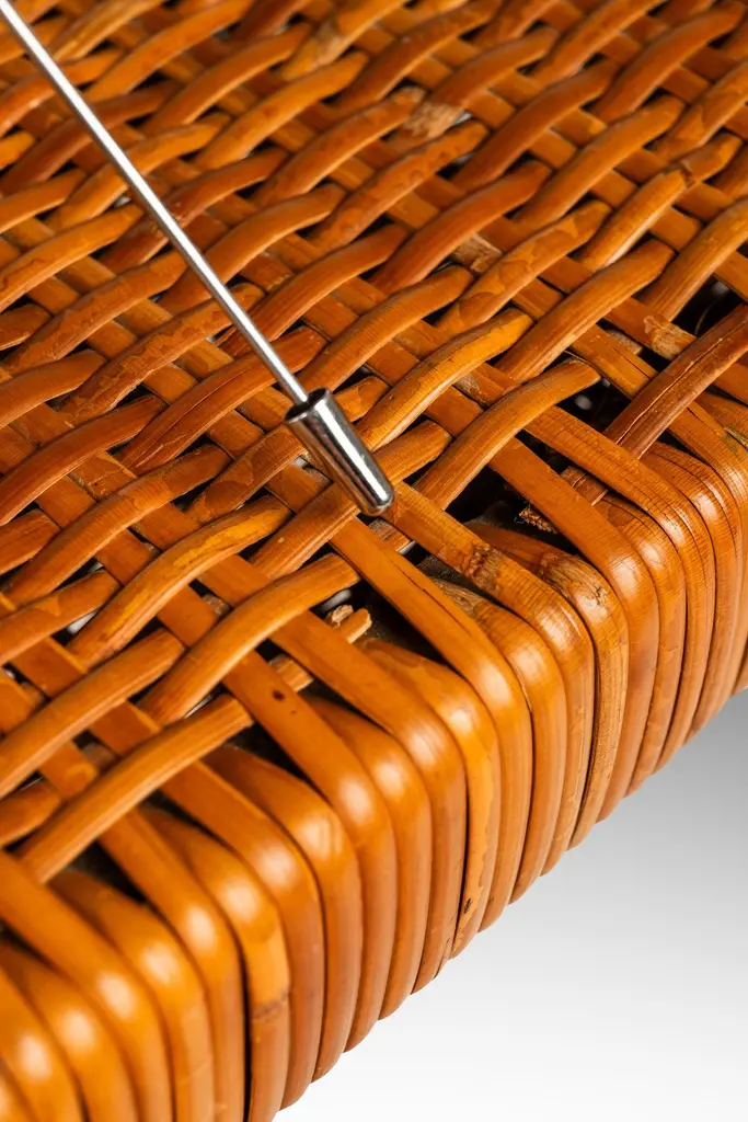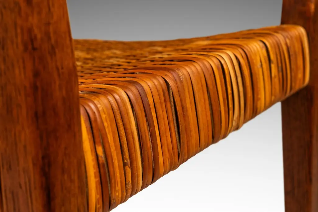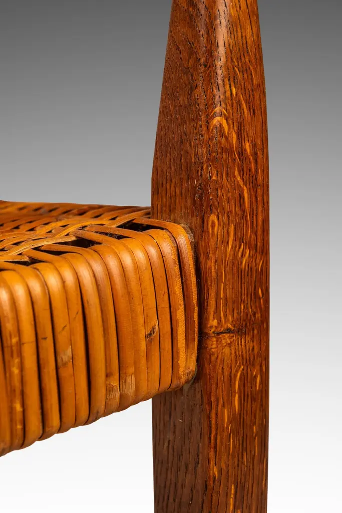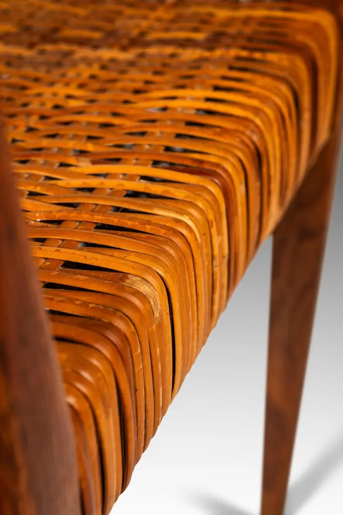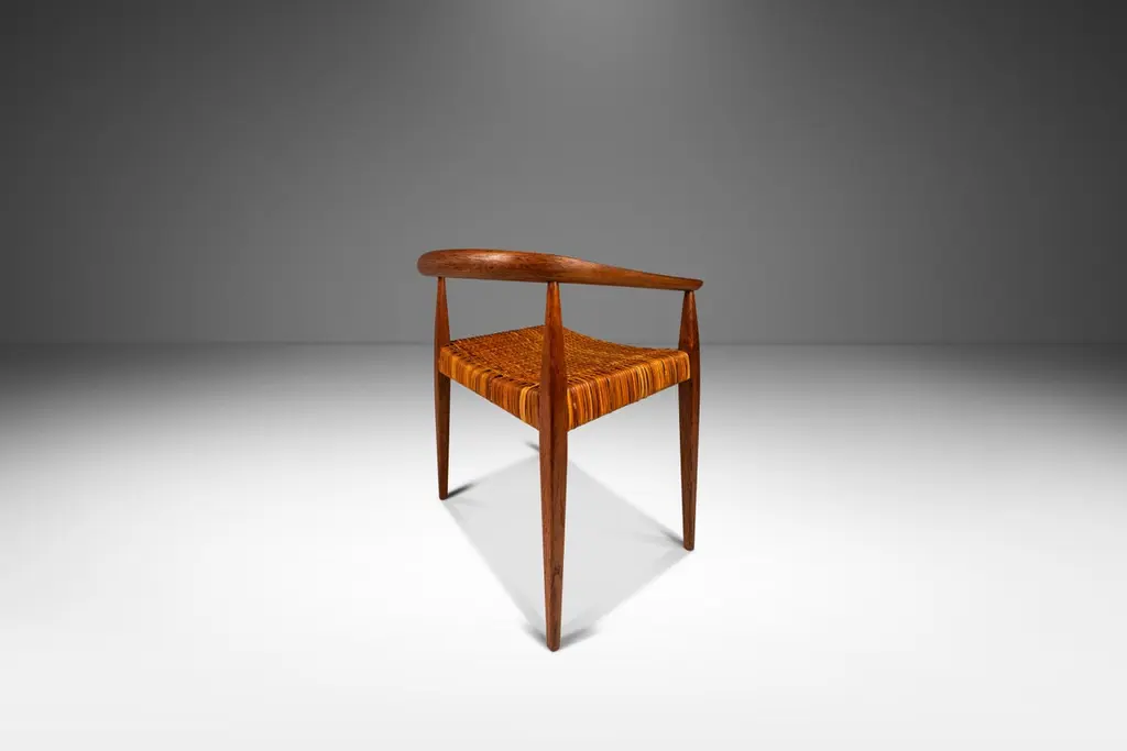 This “Model 113” chair, with it's elegant and ergonomic shape, is instantly recognizable as being Danish Mid-Century Modern. As with most of Ditzel’s designs, like her iconic “Egg Chair” (c. 1959), the Model 113 chair is based on a circular shape as shown with the deep curvature of the backrest. This graceful curve is contrasted with the square, tapered shape of the legs and the smooth oak softens this juxtaposition; resulting in a balanced and clean-lined frame. The delicately hand-woven, multi-colored cane seat perfectly offset the deep richness of the solid oak frame. The slight bow of the seat flows with the curves of the frame, making the chair both cohesive and comfortable. This delicate chair, with it's use of premium materials and subtle elegance, showcases all of the best qualities of Danish Mid-Century Modern design.Nanna Ditzel (1923 - 2005) was an icon of post-war Danish design, famous for her forward-thinking approach to shape and innovative use of new materials and techniques. She studied at the Danish School of Arts and Crafts and the Royal Danish Academy of Fine Arts in Copenhagen where she studied under Victor Isbrand, as well as fellow icons of Danish Modern Design such as Orla Mølgaard-Nielsen, Peter Hvidt and Kaare Klint.Largely forgotten by history during her own lifetime as woman operating in a man's world, Nanna Ditzel's life and prolific body of work has recently undergone a Renaissance of acclaim, admiration and reproduction. Now considered by many to be one of the top 5 Danish Modern designers and this reevaluation of Ditzel's impact on Danish design history is part of a wider reassessment of design and architecture history in recent years, acknowledging the impact of women whose work has historically been overlooked in favor of their male peers. Though she began furniture design at the zenith of the Danish Modern movement it's been argued that Ditzel's work served as a link between the canon of Mid-Century Danish Design and a more contemporary generation of designers in Denmark, including Cecilie Manz and Maria Bruun.In ultra-rare 100% original, vintage condition this 113 chair is ideal for collectors and designers alike searching for an authentic, Danish-made Nanna Ditzel chair. Perfect in both home and office spaces this Model 113 chair can blend seamlessly against a myriad of design backdrops from Mid-Century Modern to Contemporary to Boho Chic and everything in between. With it's intricately sculpted back, hand-woven cane seat and feminine features this extraordinary armchair is as rare as it is aesthetically breathtaking. Make it yours today before it's truly gone forever.---Dimensions---Width: 23 in / 58.42 cmDepth: 21 in / 53.34 cmHeight: 26.5 in / 67.31 cmSeat Height: 16.5 in / 41.91 cmThis iconic Model 113 chair, designed by the revered Nanna Ditzel and produced in Denmark in the mid-1950's, is in 100% original, vintage condition and is as at home in an art museum as it is in a household. The solid oak frame is in excellent shape showing only minor nicks and light scratches (the worst of which can be seen in the detail photos provided) but showing no gouges, stains or other signs of wear whatsoever and the woodgrains are truly stunning in natural light. It's always our intention to leave authentic pieces in original condition, however we do offer carpentry services and if you'd like this chair refinished please message us prior to checkout to discuss options and pricing.The caning does show some signs of wear such as a few missing strands as well as areas of minor discoloration (all of which can be seen both in the detail photos as well as the natural light video provided). With that said the seat is weight-bearing and structurally sound. We do offer re-caning services, if this options interests you please message us prior to checkout to discuss pricing and lead time.This visually stunning 113 chair is incredibly comfortable, structurally sound and ready for decades more of use. Please view all photos and video for details on this chair's current condition. We're limited on the amount of media we can post so additional photos and videos are available upon request.