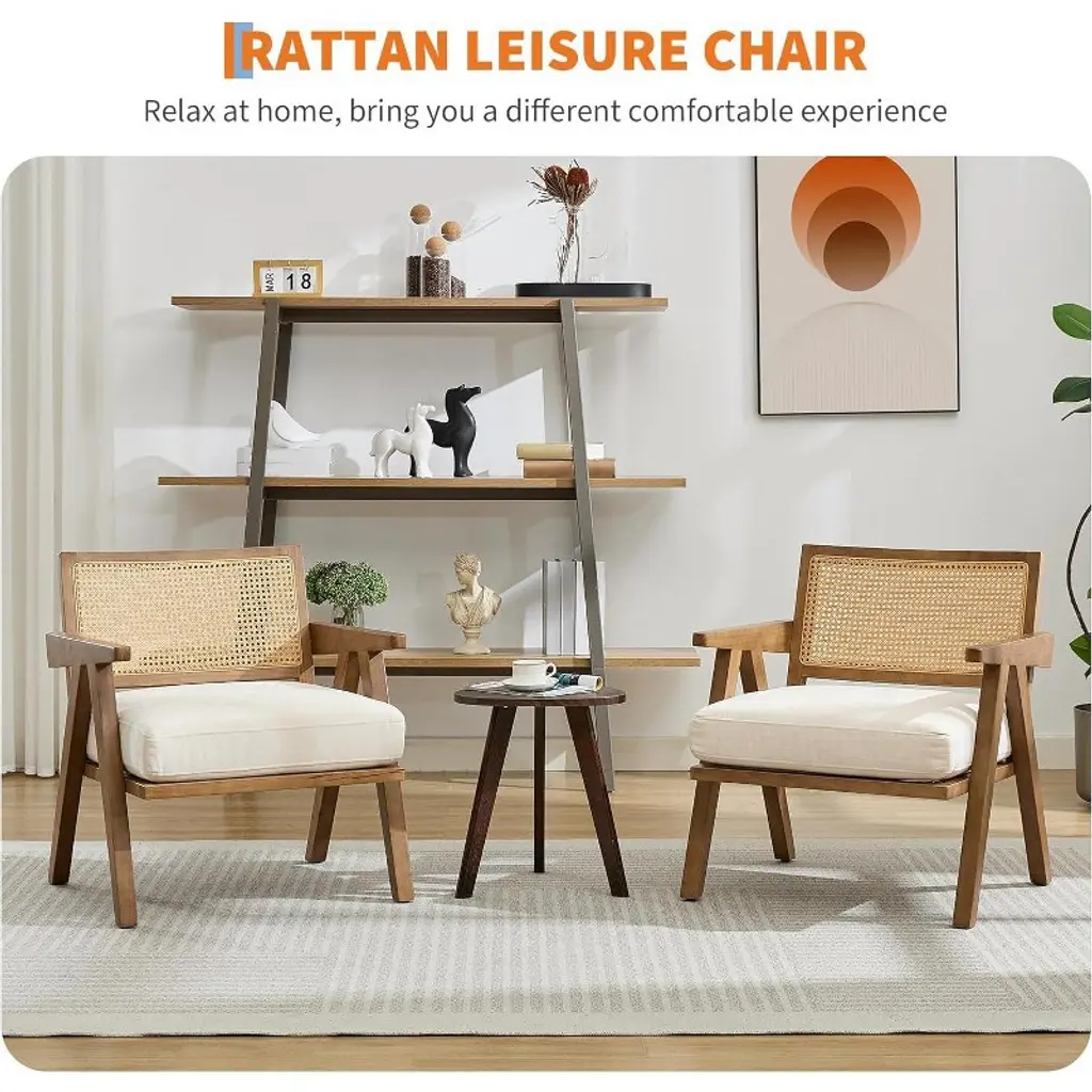 SUPERIOR COMFORT CHAIR: Relax into the soft living room chair, the rattan airy backrest and thick seat cushion are designed to offer lasting comfort whether you're reading, lounging, or entertaining guests in your home.