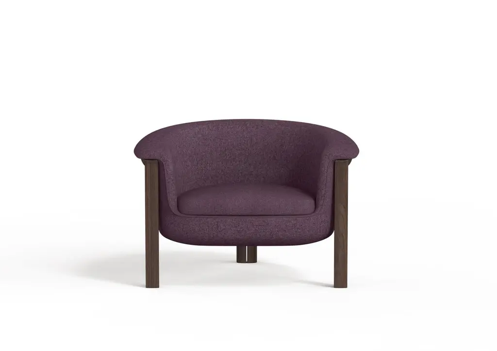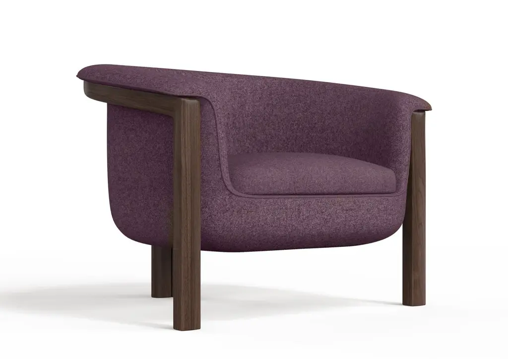 Modern Agnes Armchair In Walnut, Purple Wool Fabric