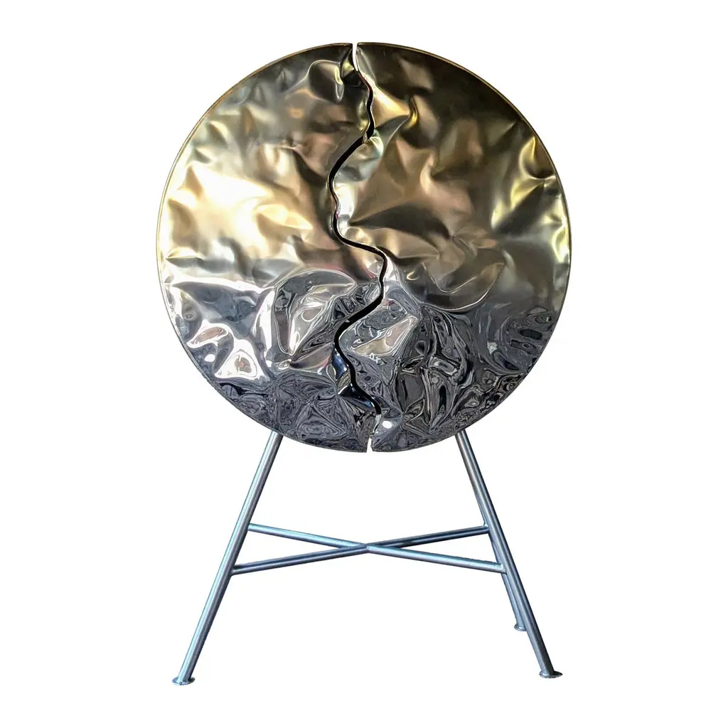 Extraordinary armchair made in lost wax-casting aluminium for Dilmos Milano. The artist Andrea Salvetti was inspired by the posture of the Madonna holding Christ in the famous Pietà sculpture of Michelangelo in Rome. The armchair's structure is made completely in polished aluminium, yet acquires its smoothness due to being molded with the effect of a soft drapery.Signed and numbered by the designer.Size:cm 125 x 120 x 45/90 H