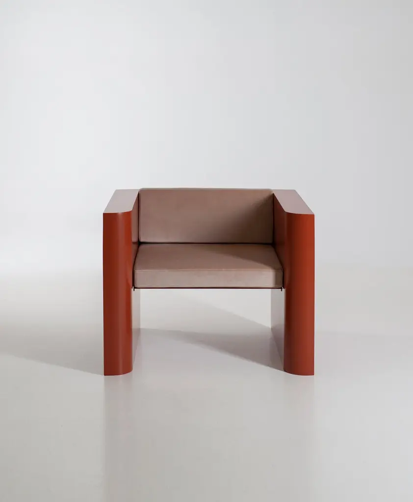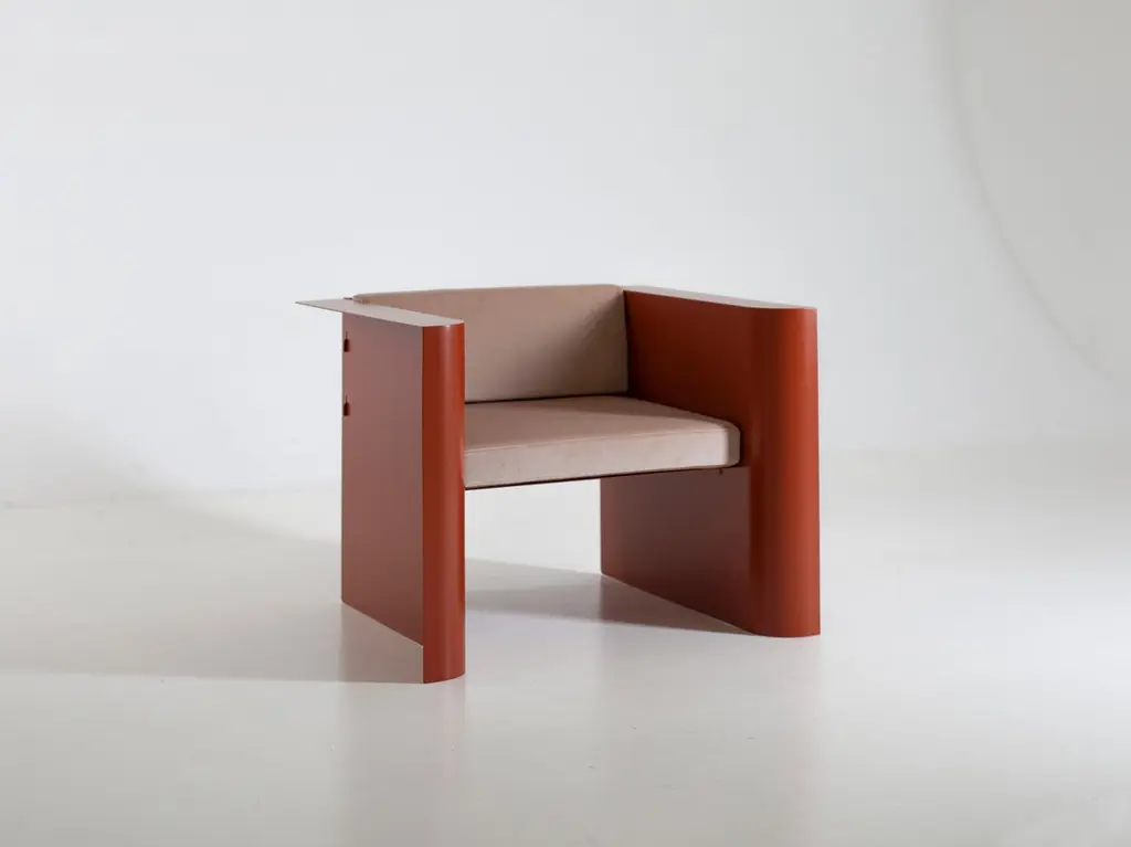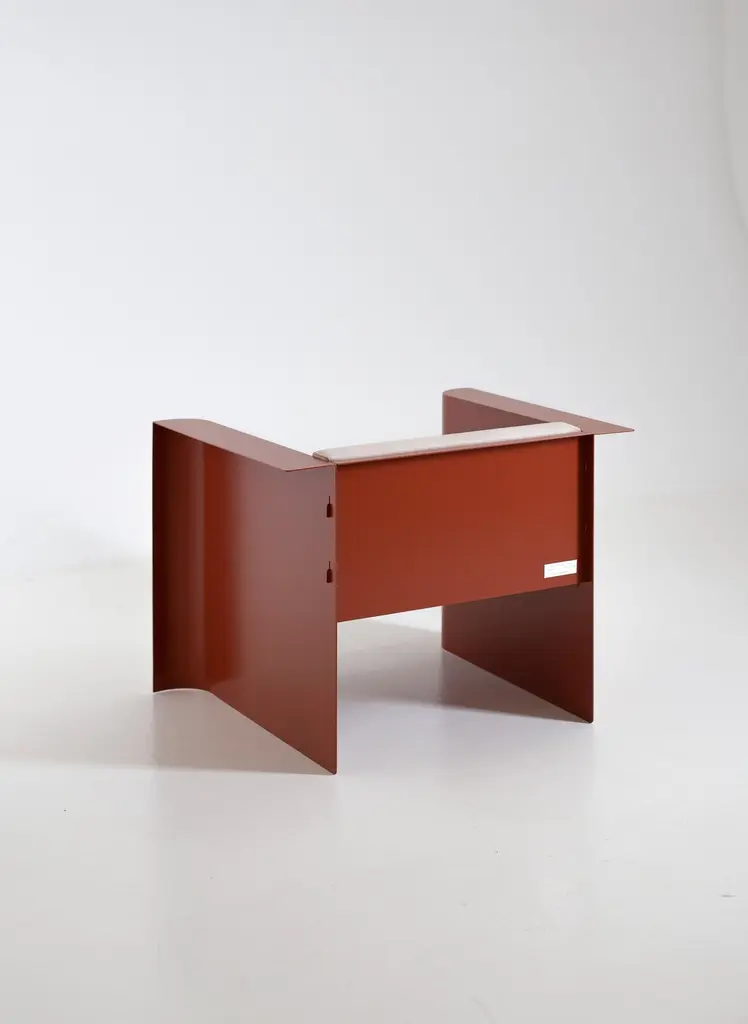 This elegant and minimalistic armchair was designed as an addition to "The Disused Collection". The armchair has sectional construction. It makes the armchair easy to fold.The armchair is made of high-quality powder-coated steel and velvet pillows. Designed and produced by Supaform.