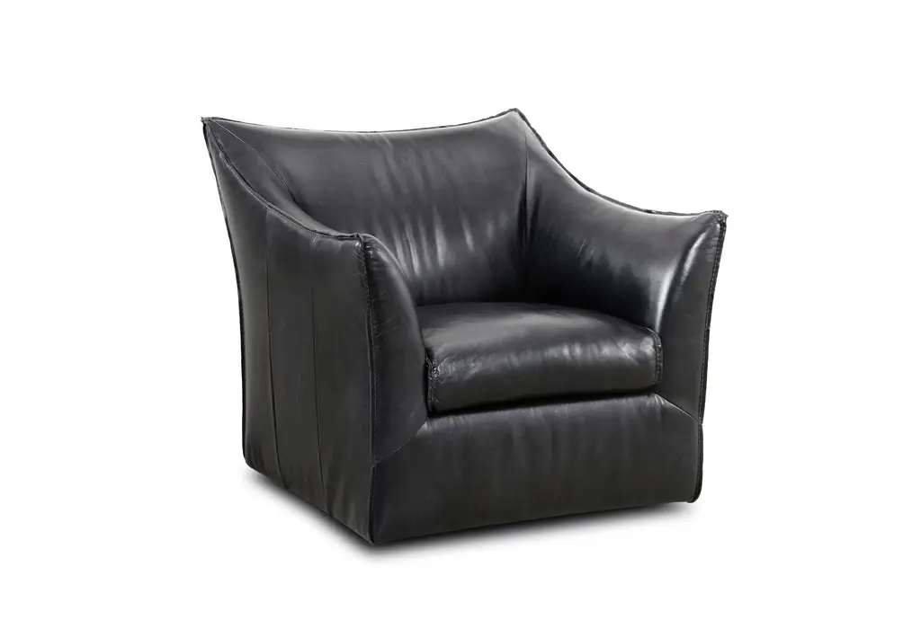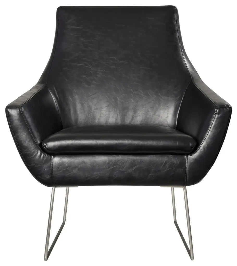 This Modern Graphite Black Leather Accent Chair is a stylish addition to any room, featuring arms for added comfort. The chair is crafted from 100% leather, offering a sleek and contemporary look. This design is the perfect bedroom chair, reading chair, club chair or accent chair for living room.