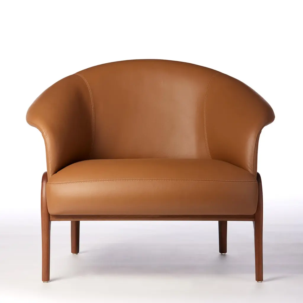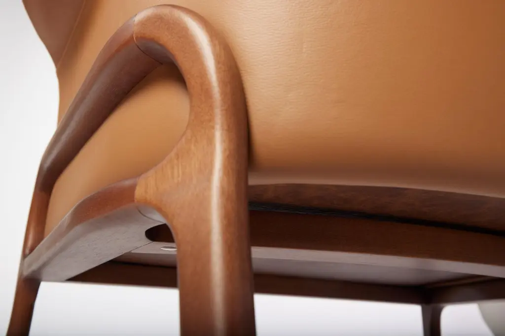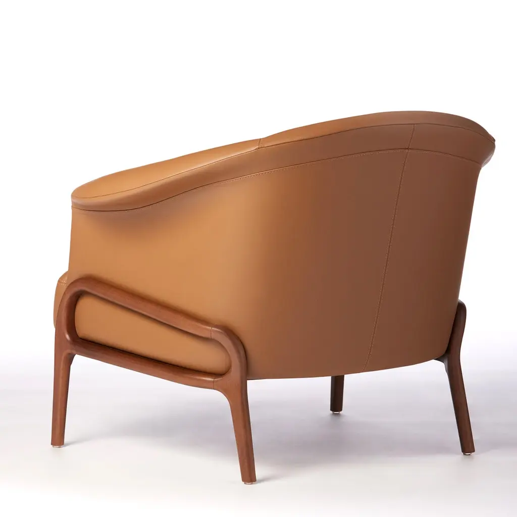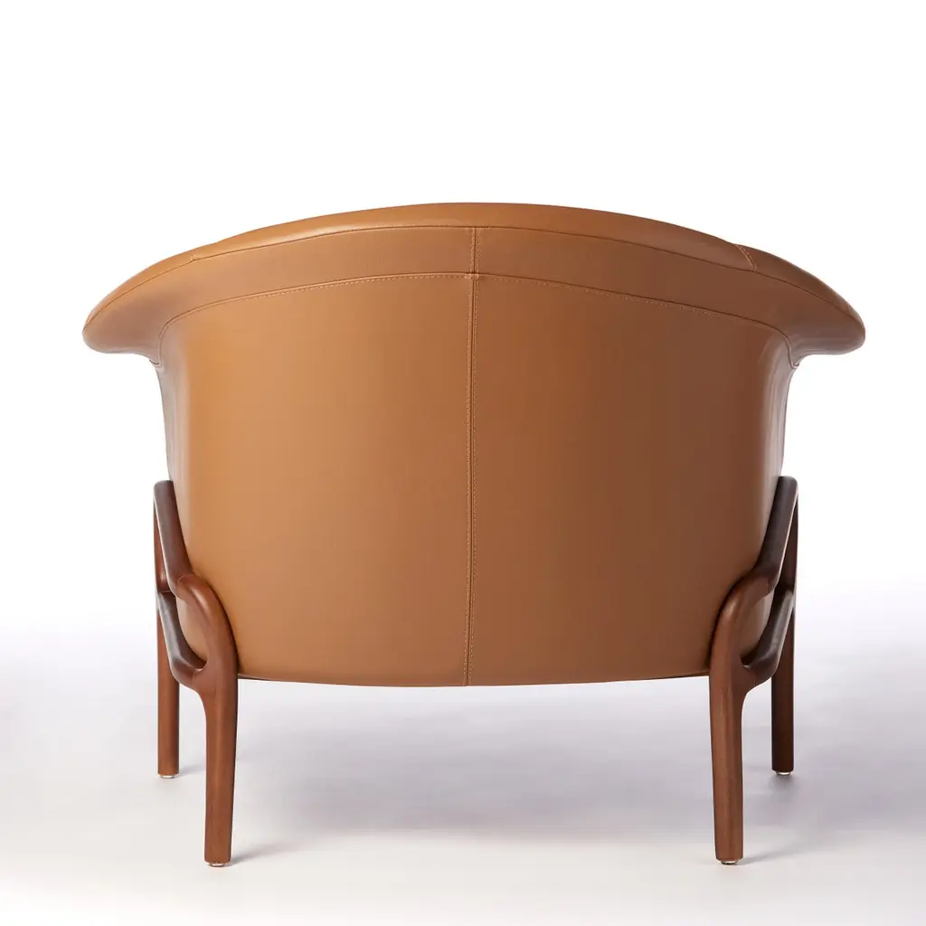 Modern Organic Style Collana Armchair In Solid Wood, Leather Flexible Seating
