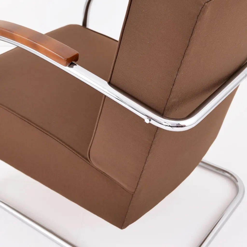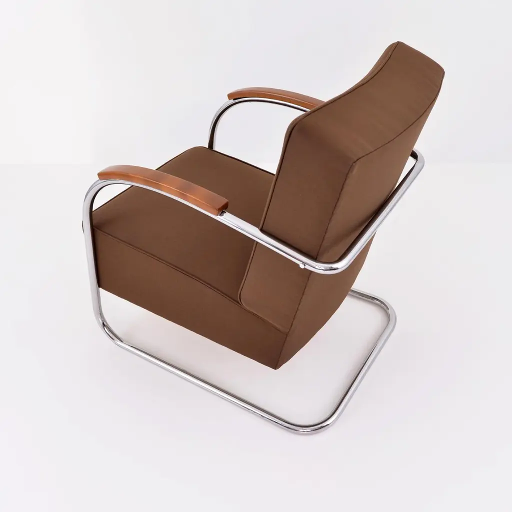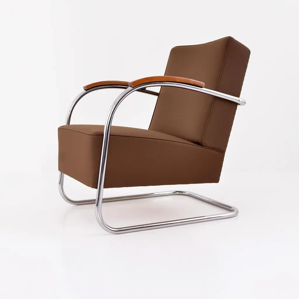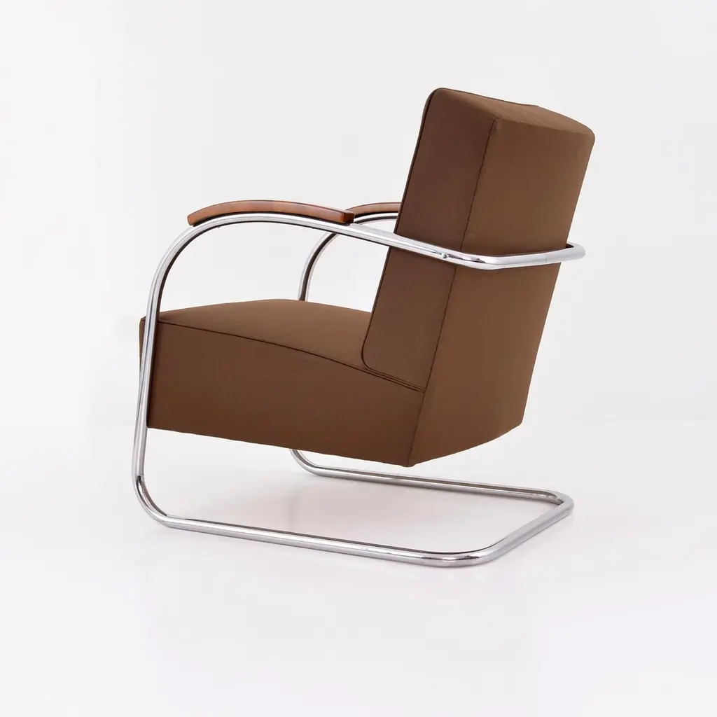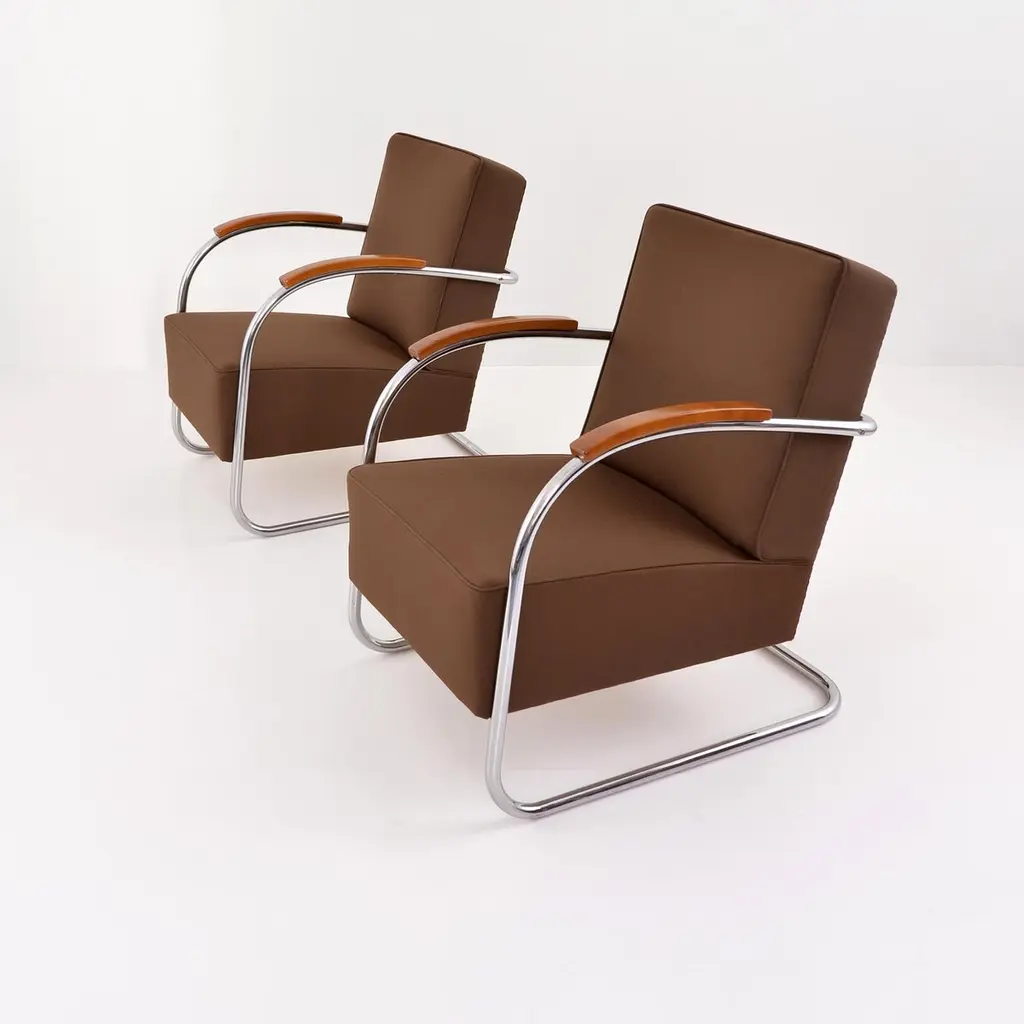 Modernist tubular steel cantilever armchairs manufactured by Mücke-Melder, c. 1930.This armchairs are restored on request and available in different amounts. Production time c. 10 weeks.