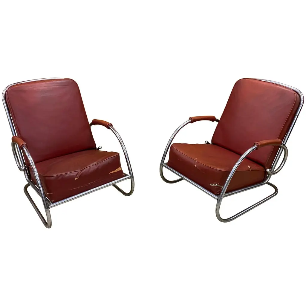 Modernist Armchairs, Chrome Plated Steel, Fabric Upholstery, Customizable, 1930