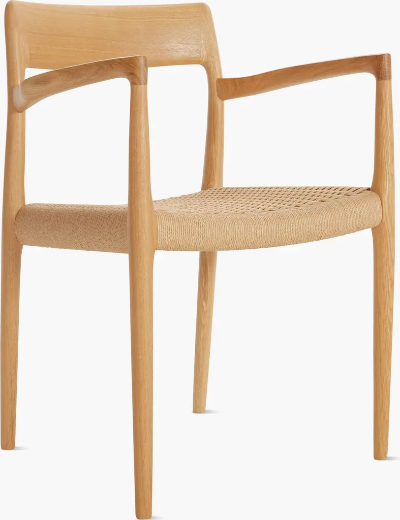 Møller furniture is made by a company founded in 1944 by Niels Otto Møller, a craftsman who “never compromised on anything," says his son. Even today the company uses old craft traditions like handwoven seats, which on the Model 57 Armchair (1959) are made from a single 425-feet-long cord. The company hand-selects raw wood from environmentally friendly sources, and the final polish is done by hand. This is an authentic, fully licensed product of J.L. Møllers Møbelfabrik. Made in Denmark.