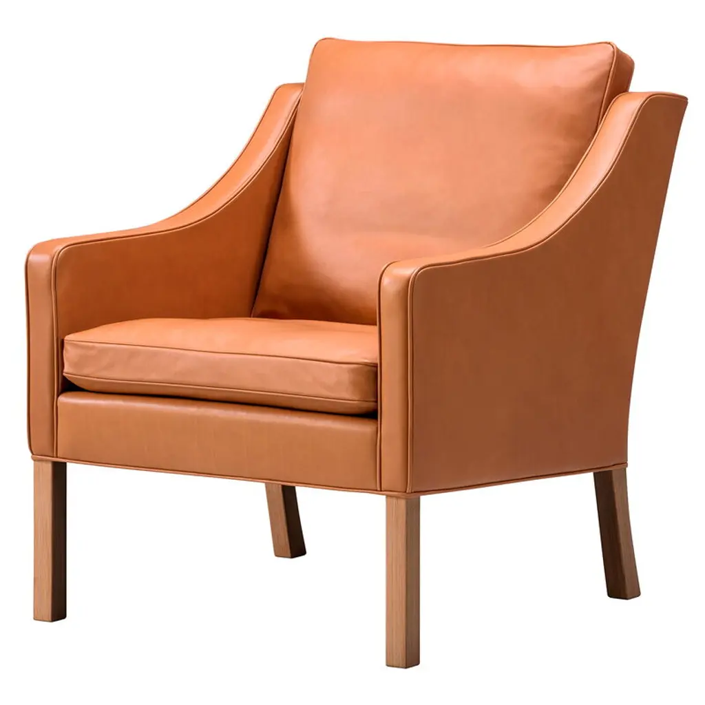 MORABO Armchair - Grann/Bomstad golden brown/metal. The contact surfaces are covered with GRANN – a soft, smooth and strong grain leather with natural variations. Other surfaces have BOMSTAD, a coated fabric that has a similar look and feel to leather.