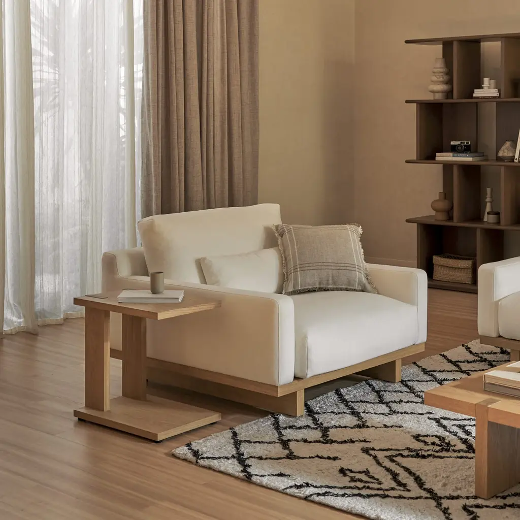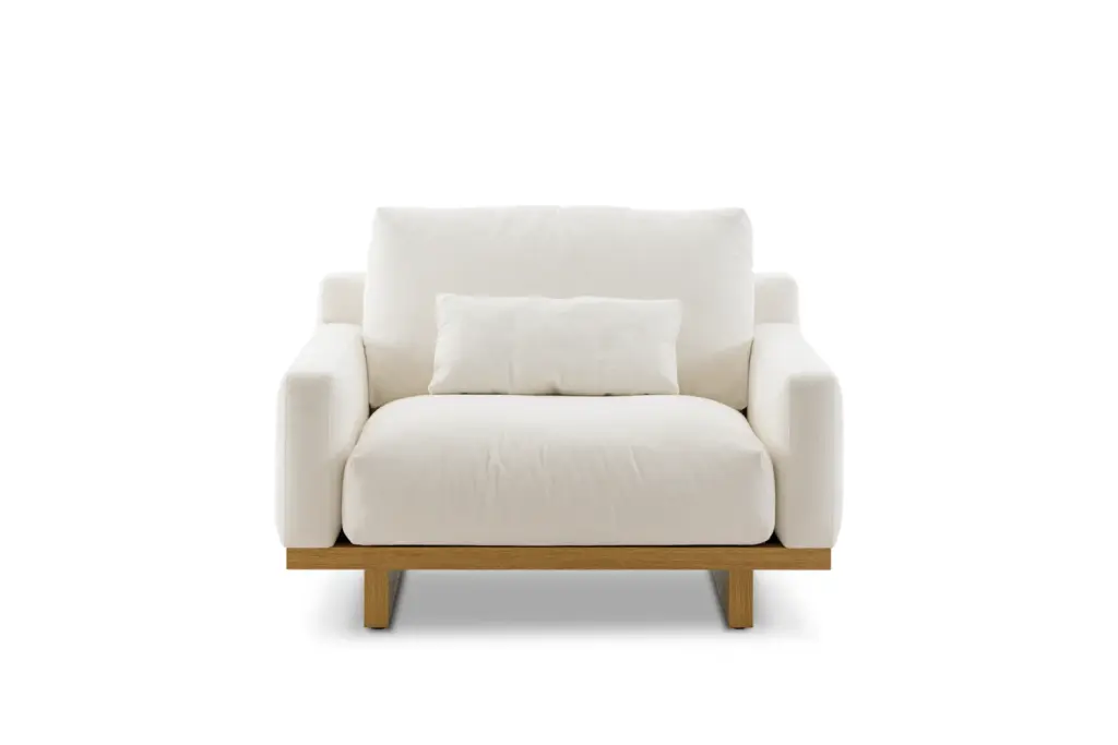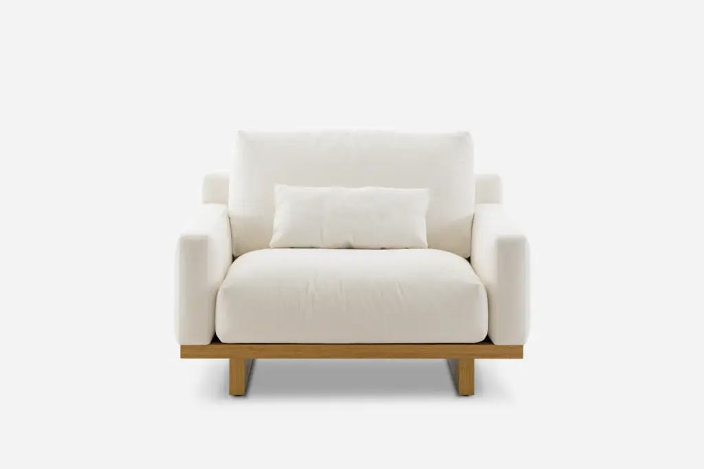 With a refined silhouette that sits low to the ground, Mori delivers a luxurious lounging experience with feather-filled seats.
