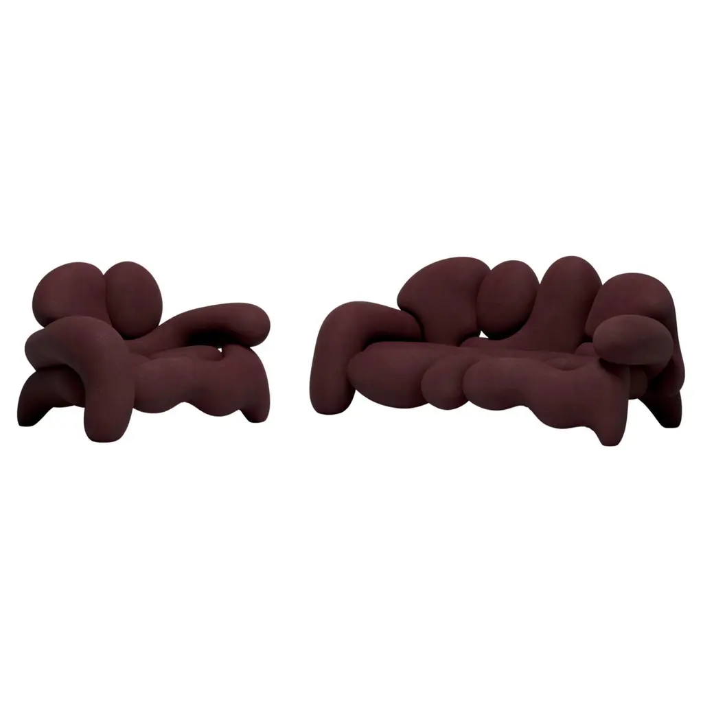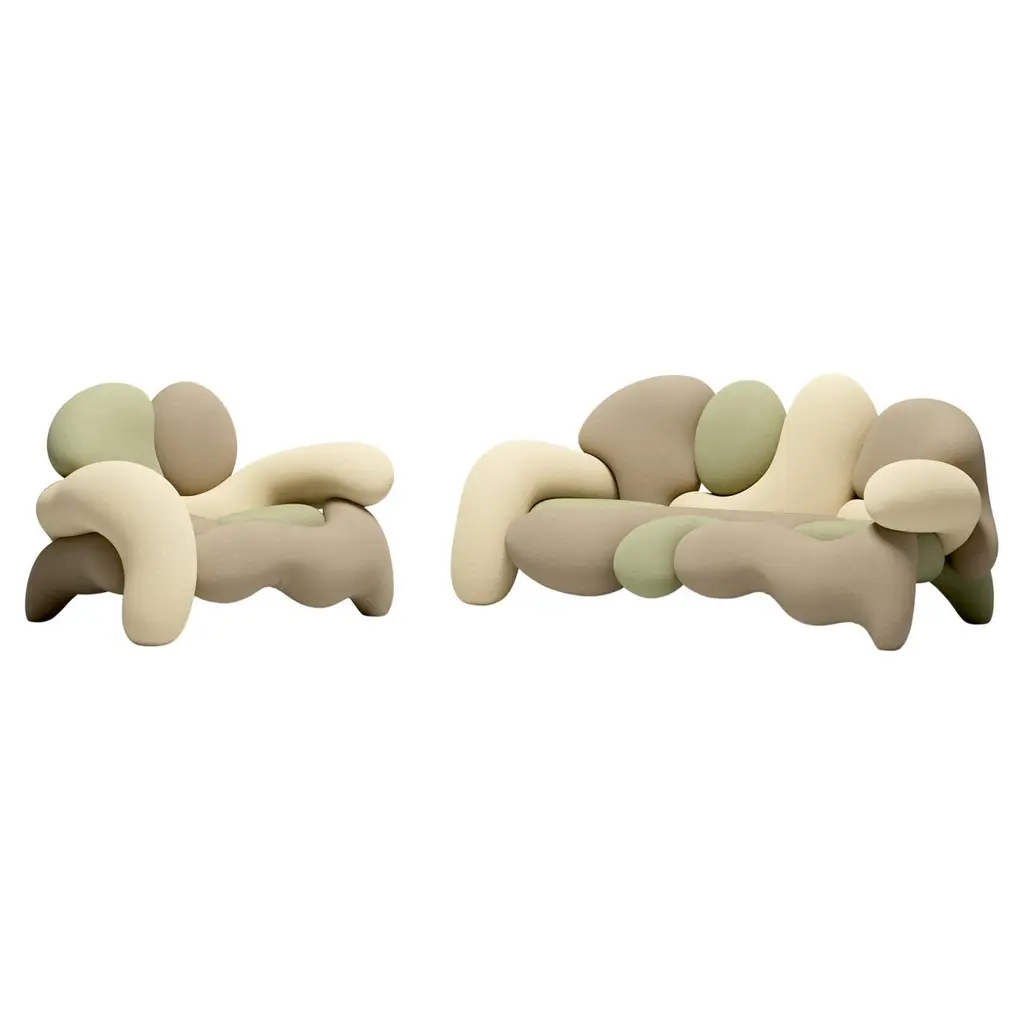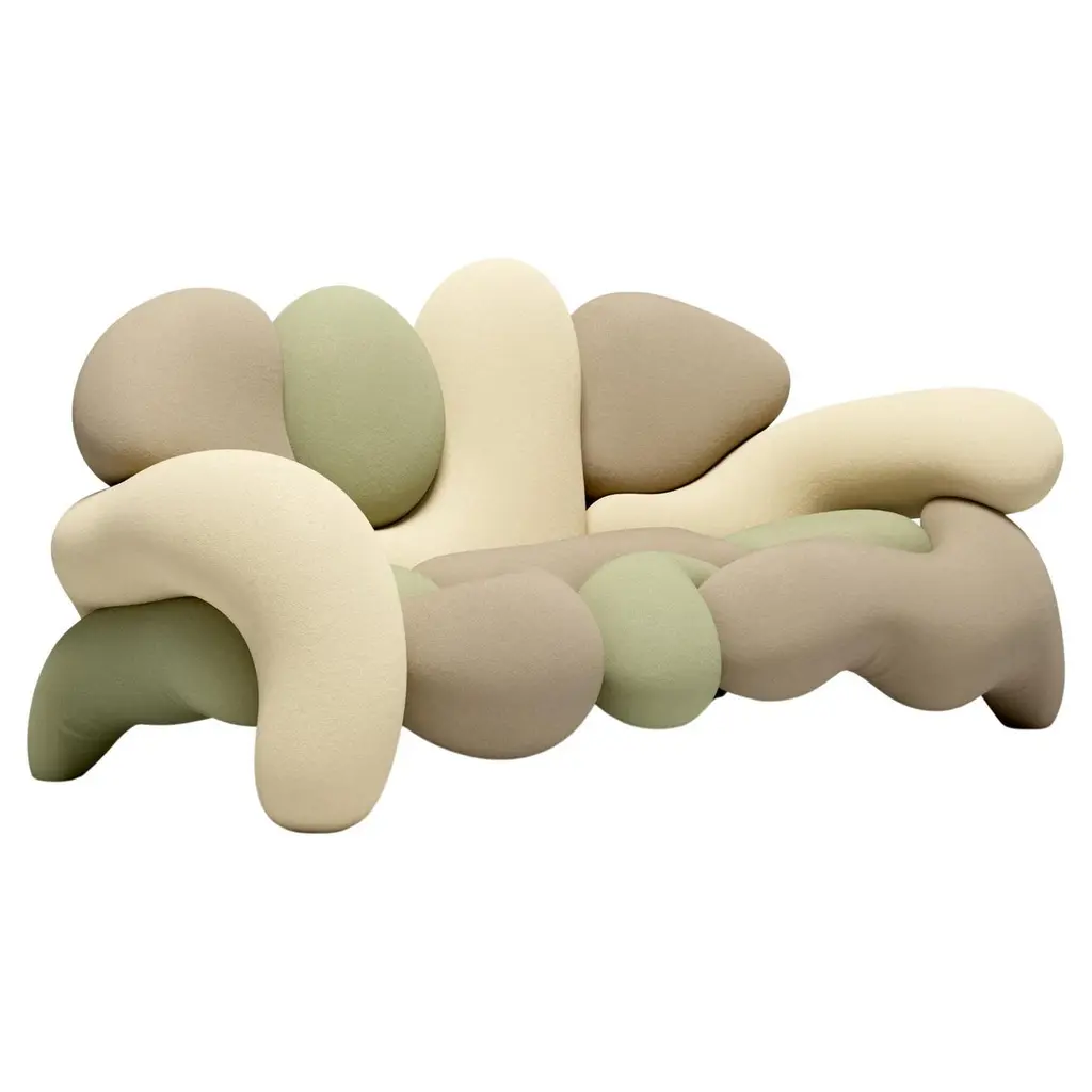 The Morphologica armchair and sofa manifest the need to rethink what it means to be radical. Designed by Misha Kahn in 2024 for Meritalia.The Morphologica armchair and sofa, born from the collaboration between Meritalia and the groundbreaking designer Misha Kahn, are made of an assemblage of modules – 12 for the sofa and 8 for the armchair – of sculpted polyurethane foam upholstered with bouclé wool fabric. The colour possibilities are endless, matches the multifariousness of the new Meritalia’s pop-modernity. A solid metal structure allows for the roller coasters of foam to swirl, enmesh and expand, resulting in an experimental, sexy more than playful, and almost ‘shocking couch’, as Kahn himself defined it.Composition: 97% Virgin Wool, 3% ElastanePerformance: Durability 45.000 Martindale (EN ISO 12947-2)Care & Maintenance: Upholstery not removableWarning: Please be aware that the colour shades shown can appear different from the real fabric colours. It is advised to request actual fabric samples before ordering.Care & MaintenanceIn case of stain act promptly dabbing the surface gently without damaging it. The lack of timeliness in the action makes cleaning less effective, resulting in the permanence of marks. Light colour fabrics should not be put in contact with coloured textiles with unbound dyes since colour pigments could penetrate coated fabric’s surface without being able to be removed.In case of slight stains, wipe the surface with a damp cloth or a mild detergent and rinse with water.For localized and stubborn stains (oil, grease, cosmetics, coffee, liqueurs, chewing-gum) it is advisable to follow the following instructions: promptly dissolve the stain with diluted ethyl alcohol (colorless liquid) in 20% water, dab and then treat with a solution of mild detergent, rinse well.PackagingPackaging in cardboard box included.Packaging in cage to quote by volume.Packaging in wooden crate to quote by volume.Additional information:Material: Bouclé WoolColor: CreamDimensions: Sofa: W 224 x D 109 x H 95 cm, Seat height: 42 cmArmchair: W 138 x D 109 x H 95 cm, Seat height: 42 cmCode: MRP140Available in other color options: Iowa, Kansas, Minnesota, Missouri, Mustard & WineAvailable in other variant options: Armchair & Sofa
