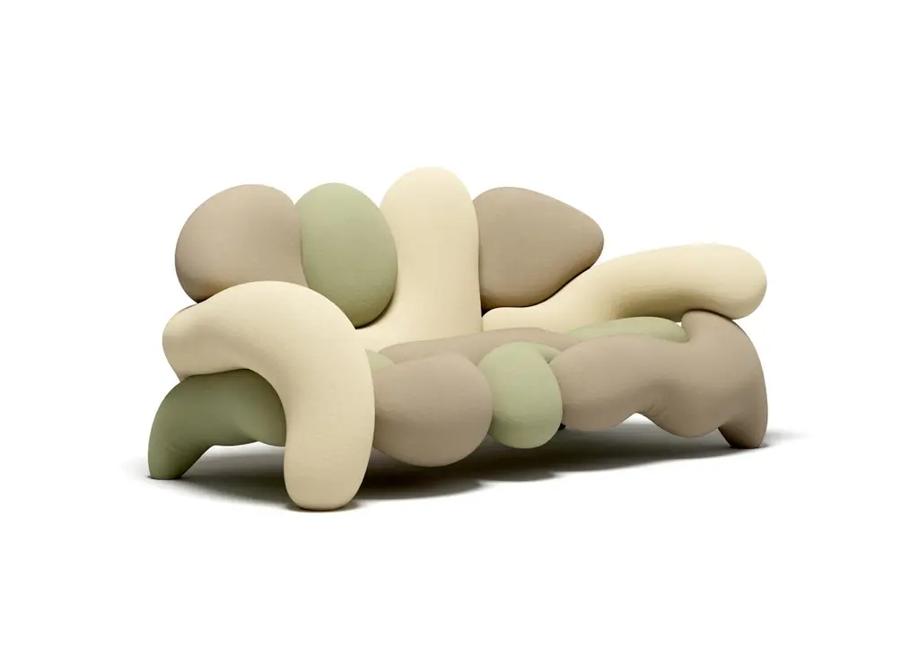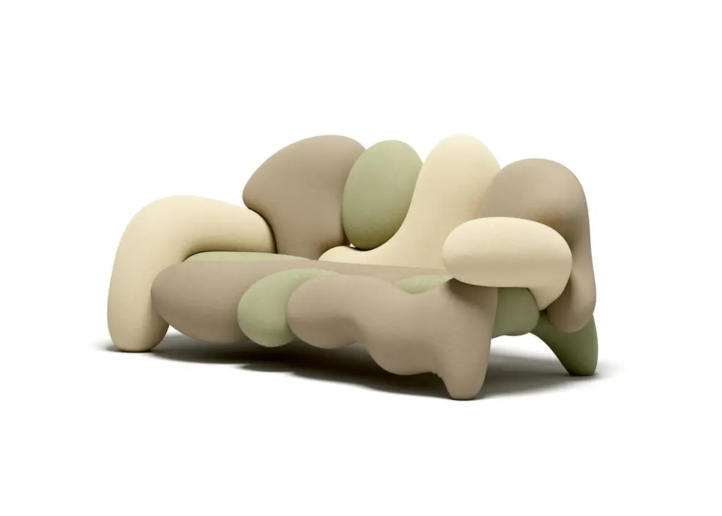 The Morphologica armchair and sofa manifest the need to rethink what it means to be radical. Designed by Misha Kahn in 2024 for Meritalia.The Morphologica armchair and sofa, born from the collaboration between Meritalia and the groundbreaking designer Misha Kahn, are made of an assemblage of modules – 12 for the sofa and 8 for the armchair – of sculpted polyurethane foam upholstered with bouclé wool fabric. The colour possibilities are endless, matches the multifariousness of the new Meritalia’s pop-modernity. A solid metal structure allows for the roller coasters of foam to swirl, enmesh and expand, resulting in an experimental, sexy more than playful, and almost ‘shocking couch’, as Kahn himself defined it.Composition: 97% Virgin Wool, 3% ElastanePerformance: Durability 45.000 Martindale (EN ISO 12947-2)Care & Maintenance: Upholstery not removableWarning: Please be aware that the colour shades shown can appear different from the real fabric colours. It is advised to request actual fabric samples before ordering.Care & MaintenanceIn case of stain act promptly dabbing the surface gently without damaging it. The lack of timeliness in the action makes cleaning less effective, resulting in the permanence of marks. Light colour fabrics should not be put in contact with coloured textiles with unbound dyes since colour pigments could penetrate coated fabric’s surface without being able to be removed.In case of slight stains, wipe the surface with a damp cloth or a mild detergent and rinse with water.For localized and stubborn stains (oil, grease, cosmetics, coffee, liqueurs, chewing-gum) it is advisable to follow the following instructions: promptly dissolve the stain with diluted ethyl alcohol (colorless liquid) in 20% water, dab and then treat with a solution of mild detergent, rinse well.PackagingPackaging in cardboard box included.Packaging in cage to quote by volume.Packaging in wooden crate to quote by volume.Additional information:Material: Bouclé WoolColor: KansasDimensions: Sofa: W 224 x D 109 x H 95 cm, Seat height: 42 cmArmchair: W 138 x D 109 x H 95 cm, Seat height: 42 cmCode: MRP225 (Sofa) & MRP140 (Armchair)Available in other color options: Cream, Iowa, Michigan, Nebraska, Mustard & WineAvailable in other variant options: Armchair & Sofa