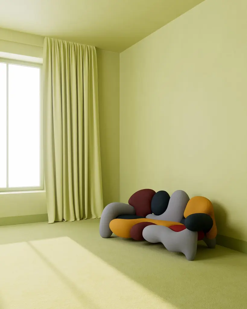 The Morphologica armchair and sofa manifest the need to rethink what it means to be radical. Designed by Misha Kahn in 2024 for Meritalia.The Morphologica armchair and sofa, born from the collaboration between Meritalia and the groundbreaking designer Misha Kahn, are made of an assemblage of modules – 12 for the sofa and 8 for the armchair – of sculpted polyurethane foam upholstered with bouclé wool fabric. The colour possibilities are endless, matches the multifariousness of the new Meritalia’s pop-modernity. A solid metal structure allows for the roller coasters of foam to swirl, enmesh and expand, resulting in an experimental, sexy more than playful, and almost ‘shocking couch’, as Kahn himself defined it.Composition: 97% Virgin Wool, 3% ElastanePerformance: Durability 45.000 Martindale (EN ISO 12947-2)Care & Maintenance: Upholstery not removableWarning: Please be aware that the colour shades shown can appear different from the real fabric colours. It is advised to request actual fabric samples before ordering.Care & MaintenanceIn case of stain act promptly dabbing the surface gently without damaging it. The lack of timeliness in the action makes cleaning less effective, resulting in the permanence of marks. Light colour fabrics should not be put in contact with coloured textiles with unbound dyes since colour pigments could penetrate coated fabric’s surface without being able to be removed.In case of slight stains, wipe the surface with a damp cloth or a mild detergent and rinse with water.For localized and stubborn stains (oil, grease, cosmetics, coffee, liqueurs, chewing-gum) it is advisable to follow the following instructions: promptly dissolve the stain with diluted ethyl alcohol (colorless liquid) in 20% water, dab and then treat with a solution of mild detergent, rinse well.PackagingPackaging in cardboard box included.Packaging in cage to quote by volume.Packaging in wooden crate to quote by volume.Additional information:Material: Bouclé WoolColor: IowaDimensions: Sofa: W 224 x D 109 x H 95 cm, Seat height: 42 cmArmchair: W 138 x D 109 x H 95 cm, Seat height: 42 cmCode: MRP225 (Sofa) & MRP140 (Armchair)Available in other color options: Cream, Kansas, Minnesota, Missouri, Mustard & WineAvailable in other variant options: Armchair & Sofa