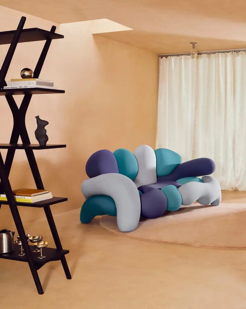 The Morphologica armchair and sofa manifest the need to rethink what it means to be radical. Designed by Misha Kahn in 2024 for Meritalia.The Morphologica armchair and sofa, born from the collaboration between Meritalia and the groundbreaking designer Misha Kahn, are made of an assemblage of modules – 12 for the sofa and 8 for the armchair – of sculpted polyurethane foam upholstered with bouclé wool fabric. The colour possibilities are endless, matches the multifariousness of the new Meritalia’s pop-modernity. A solid metal structure allows for the roller coasters of foam to swirl, enmesh and expand, resulting in an experimental, sexy more than playful, and almost ‘shocking couch’, as Kahn himself defined it.Composition: 97% Virgin Wool, 3% ElastanePerformance: Durability 45.000 Martindale (EN ISO 12947-2)Care & Maintenance: Upholstery not removableWarning: Please be aware that the colour shades shown can appear different from the real fabric colours. It is advised to request actual fabric samples before ordering.Care & MaintenanceIn case of stain act promptly dabbing the surface gently without damaging it. The lack of timeliness in the action makes cleaning less effective, resulting in the permanence of marks. Light colour fabrics should not be put in contact with coloured textiles with unbound dyes since colour pigments could penetrate coated fabric’s surface without being able to be removed.In case of slight stains, wipe the surface with a damp cloth or a mild detergent and rinse with water.For localized and stubborn stains (oil, grease, cosmetics, coffee, liqueurs, chewing-gum) it is advisable to follow the following instructions: promptly dissolve the stain with diluted ethyl alcohol (colorless liquid) in 20% water, dab and then treat with a solution of mild detergent, rinse well.PackagingPackaging in cardboard box included.Packaging in cage to quote by volume.Packaging in wooden crate to quote by volume.Additional information:Material: Bouclé WoolColor: MissouriDimensions: Sofa: W 224 x D 109 x H 95 cm, Seat height: 42 cmArmchair: W 138 x D 109 x H 95 cm, Seat height: 42 cmCode: MRP225 (Sofa) & MRP140 (Armchair)Available in other variant options: Armchair & Sofa