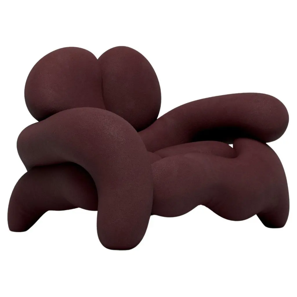 Morphologica Wine Sofa + Armchair In Bouclé Wool By Misha Kahn