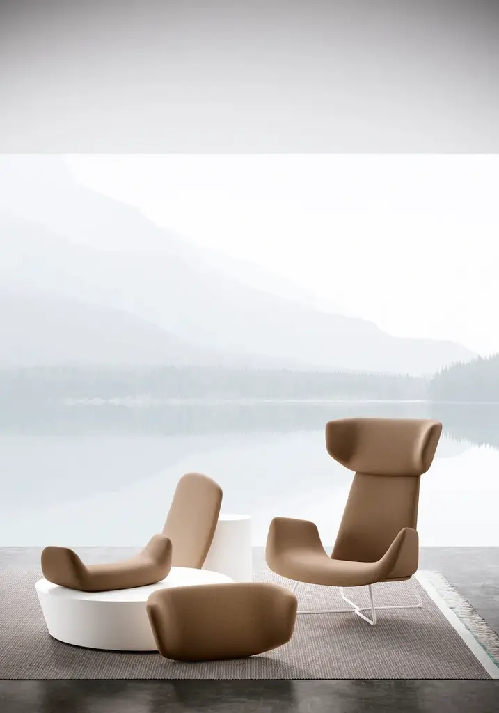 With the aim of creating the perfect armchair for the many different needs of the contract market, from office use to relaxation, Michael Geldmacher has conceived and espoused an innovative outlook on design. The result is Myplace, a new collection of lounge chairs presented at Milan 2016 by LaCividina.The two shells used for the seats and the headrests are both produced in single moulds of different shapes and sizes. The parts were inspired by the sweeping lines of a conch and they can be combined to form a collection of armchairs that can easily respond to any seating needs.This cutting-edge yet simple concept is behind 18 different armchair models. Their distinguishing features are their flowing forms, which cradle the body and work in conjunction with the foam rubber padding in varying densities to guarantee maximum seating comfort. The Myplace base was designed to emphasize the overall lightness of the piece. Refined oak in black or natural hues is available in a stand design with four legs. Alternatively, black, plum and ivory coated metal can be used to make either a sled base or a stand with four legs.