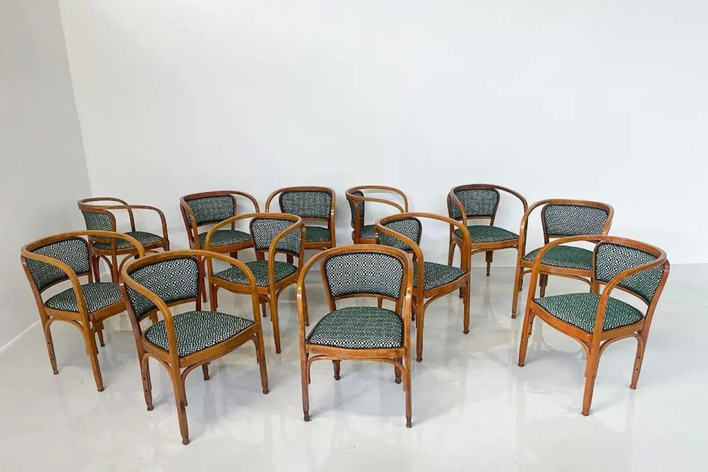 N° 715 Gustav Siegel Armchair for Kohn, Fabric and Wood, Austria, 1900s - New Upholstery - 12 Available