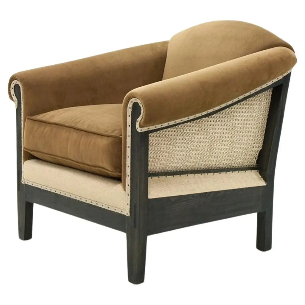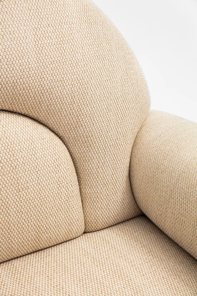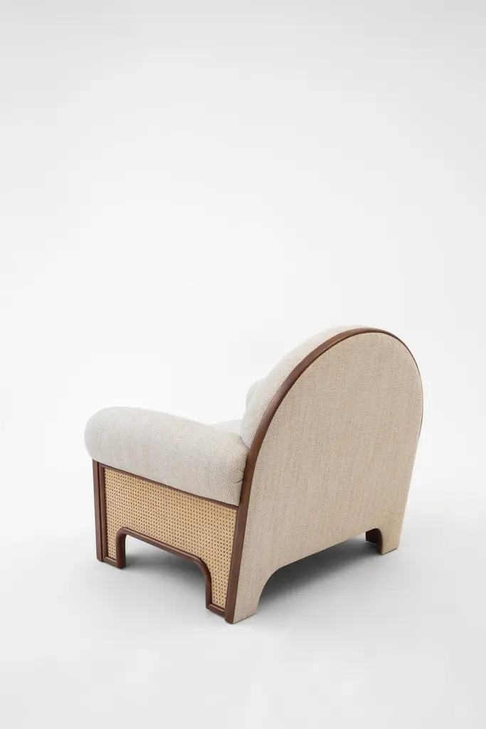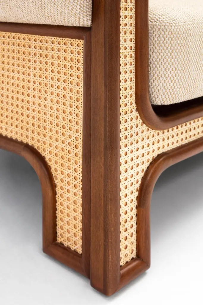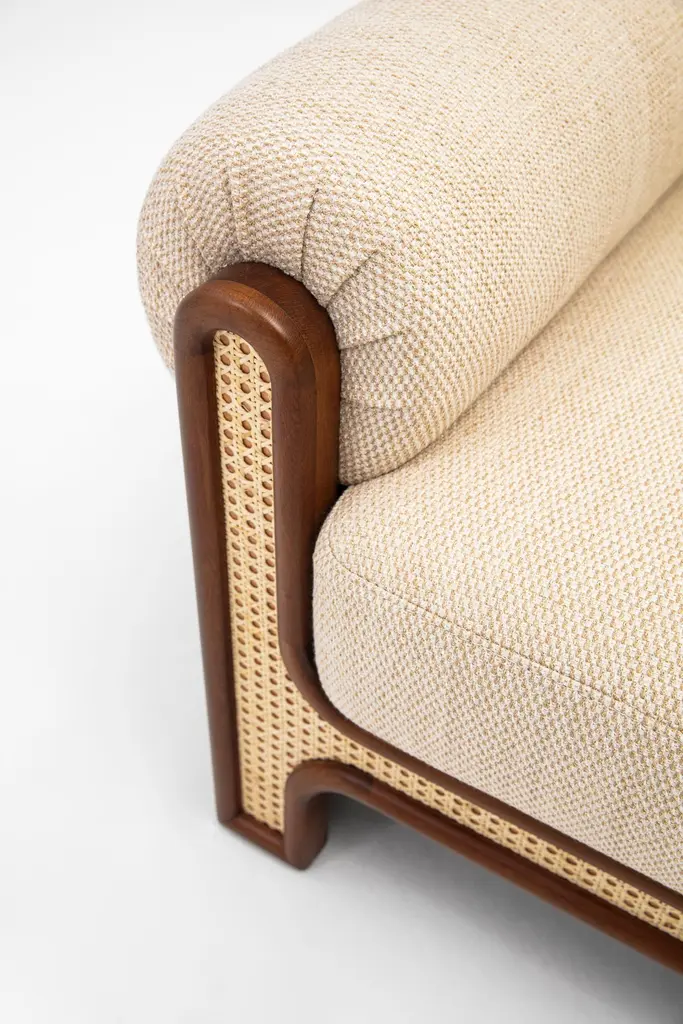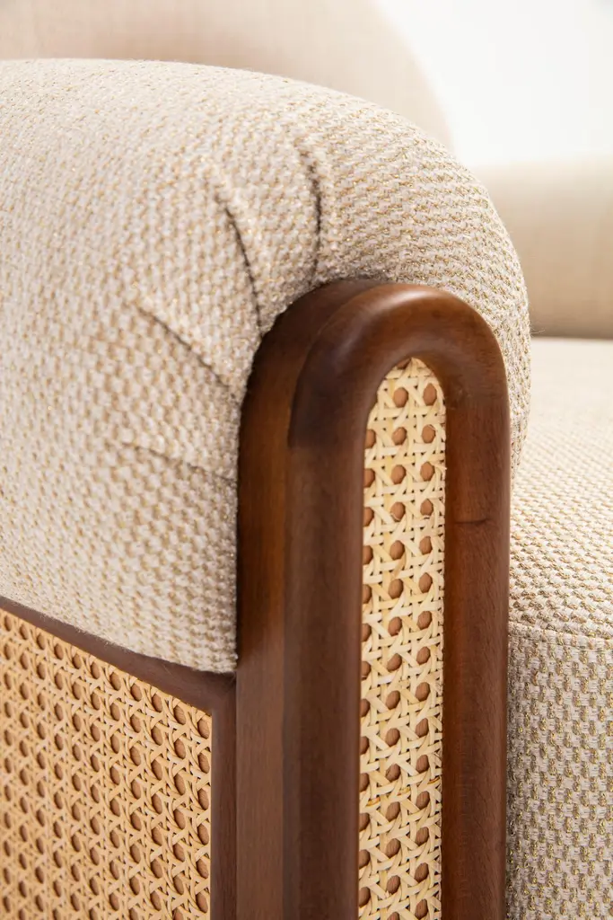 The N-gene armchair is a reinterpretation of an armchair designed by Merve’s uncle, interior designer, Engine, in the 1970s. The N-Gene is re-envisioned with caning, and is upholstered in beige colored fabric. This entirely handcrafted armchair is extremely comfortable and is made of beech wood.