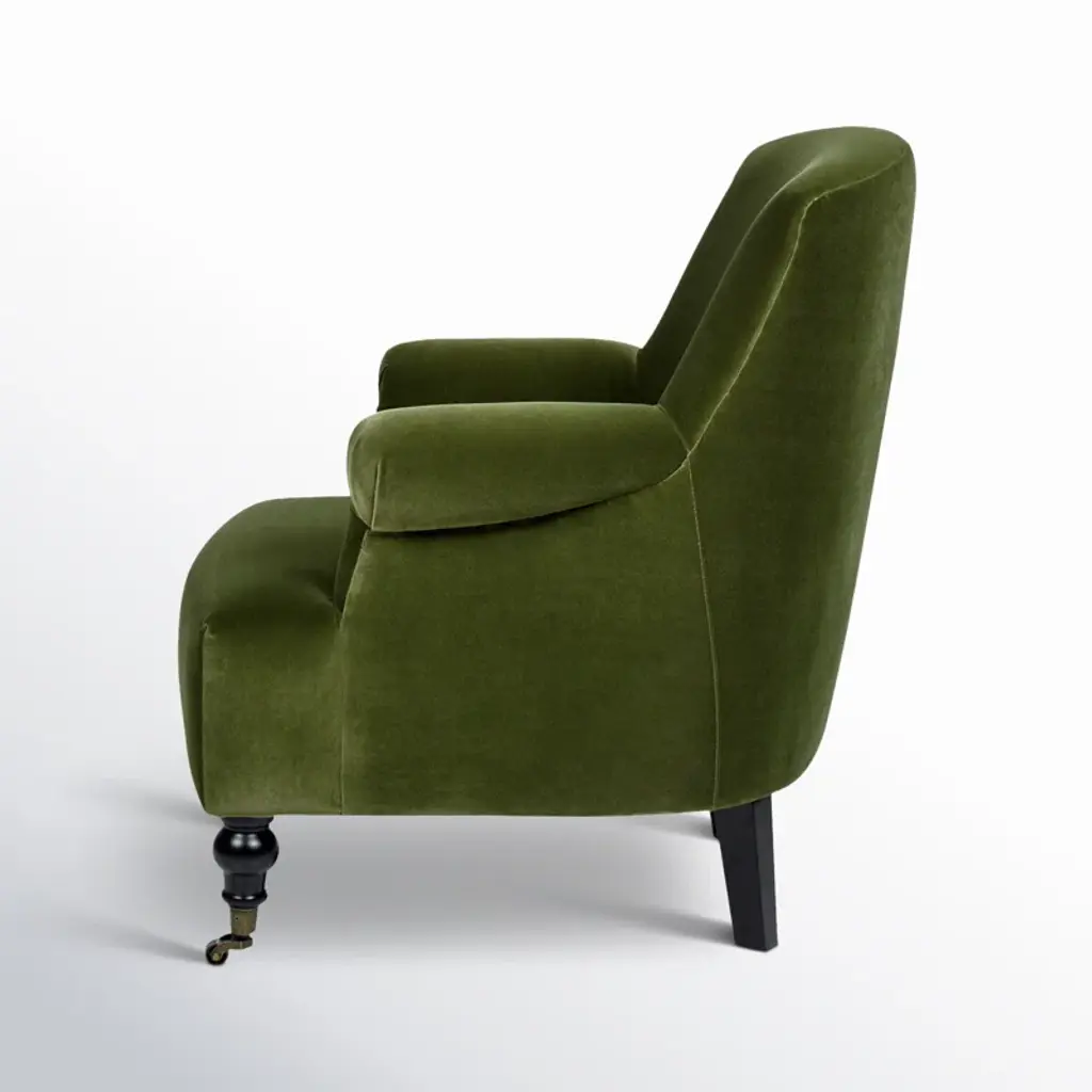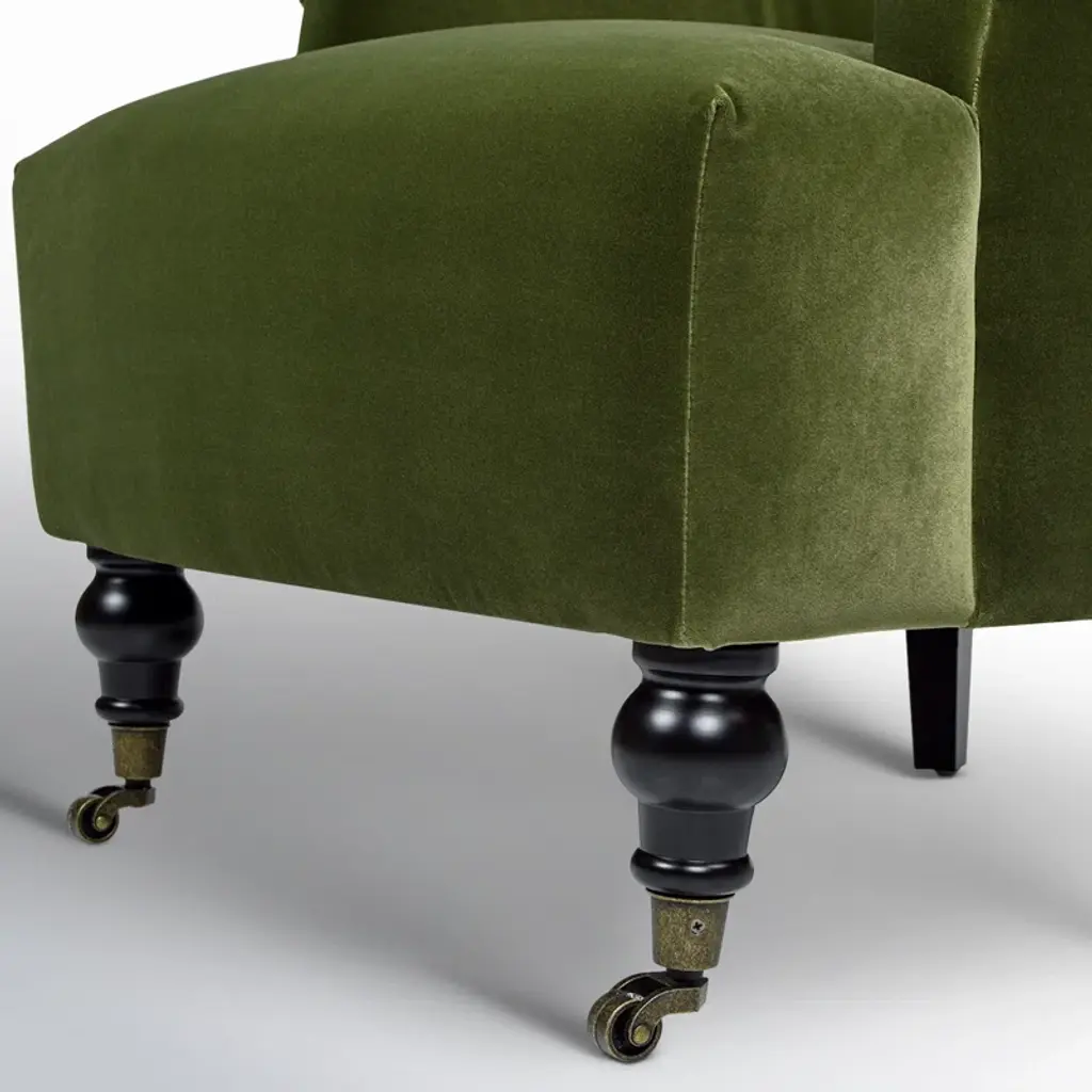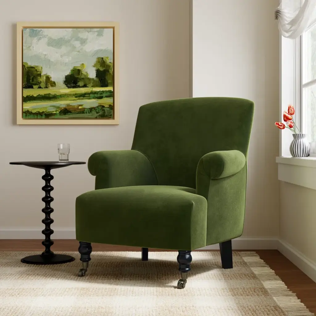 We love this refined version of a classic armchair. Elements, like flared arms, turned legs, and tight back, nod to traditional design, while the shapely silhouette and smaller scale lean it toward an Art Deco aesthetic. We love the sumptuous velvet upholstery that feels soft and looks luxe. Added perk: It sits on casters so you can easily relocate it anywhere in the room.