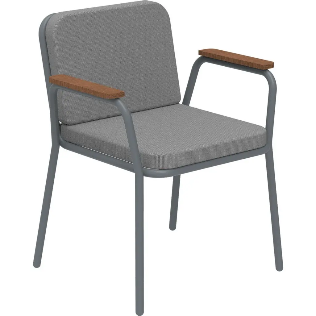 Nature Grey Armchair by MOWEEDimensions: D60 x W67 x H83 cm (seat height 42 cm).Material: Aluminum, upholstery and Iroko Wood.Weight: 5 kg.Also available in different colors and finishes. Please contact us.An unmistakable collection for its beauty and robustness. A tribute to the Valencian manufacturing tradition as a challenge to innovation, making it sustainable and durable. A fresher version, Nature. It presents touches of natural and sustainable wood, which gives warmth and comfort, and makes it a unique collection.Möwee is part of the work, effort and commitment of Gaviota, a leading company in the outdoor sector. It was set up as an independent venture to broaden horizons in the outdoor furniture world, with its own distinctive character and way of doing things. Freshness, simplicity, quality and design are at the heart of its DNA.