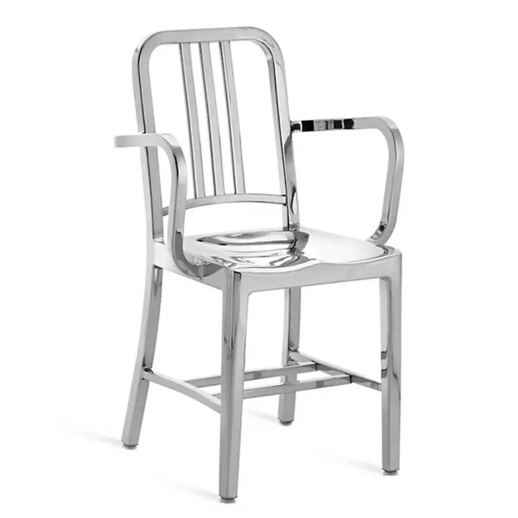 Since 1944, Emeco has supported characteristics found in the marine lifestyle, a lifetime of durability and strength. Navy® Armchair is a timeless seat, crafted of moldable recycled aluminum. Formed by hand into a symmetrical silhouette, the ergonomic Navy® Armchair provides modern seating and lifelong satisfaction.