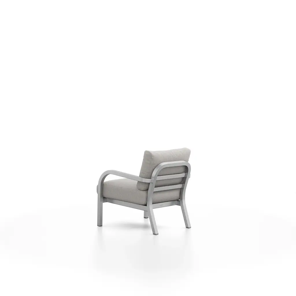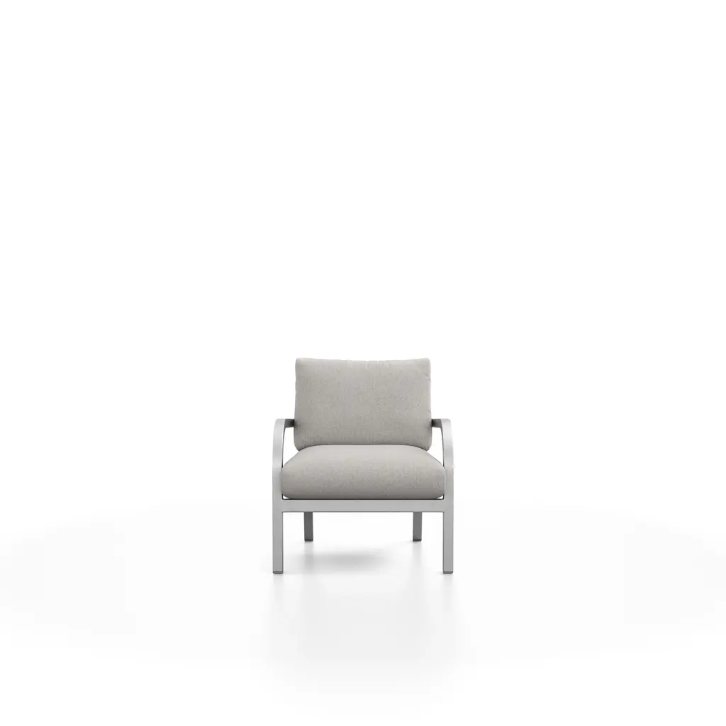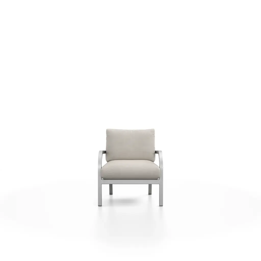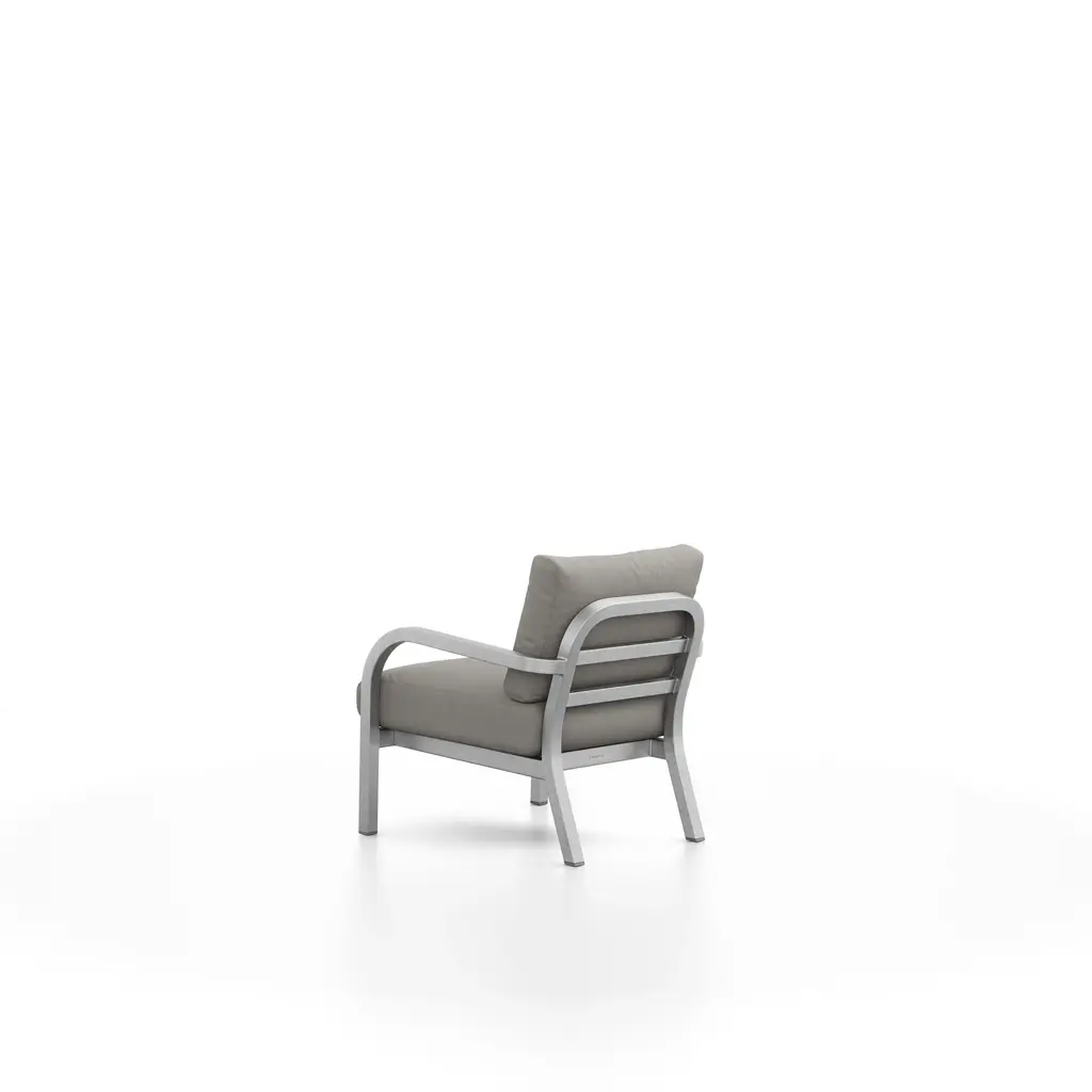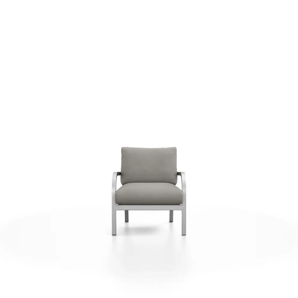 Navy Lounge by Jasper Morrison, 2025 Re-design of Emeco's classic 1940s sofa series, first made for the US Navy. Lightweight, yet extremely durable, lounge armchair for indoor and outdoor use, adaptable to a wide range of settings. The frame in recycled aluminum is handmade by Emeco's craftsmen in Hanover, Pennsylvania, following the same unique process of hand welding and heat treating used since 1944 that makes furniture so strong it comes with a lifetime warranty - in and out. The frame comes in Emeco's signature hand brushed finish with a clear powder coat, or in powder coat colors. Black and White Grey are standard options, Emeco's in-house range of colors also available at no up-charge, no MOQ. Contact us to place your order. Upholstery available in a range of leather, fabric and outdoor textiles. All cushions with Sunbrella Heritage cushion covers are outdoor approved. COM/COL also offered, subject to approval - please contact us to confirm suitability of custom textiles prior to order. Cushions are removable and attach to the frame with snaps and velcro for easy installation, replacement and removal, for storing when not in use. Optional arm caps in solid wood sold separately.