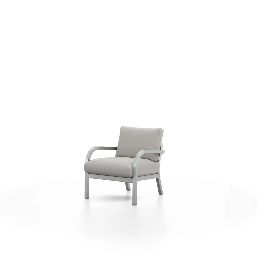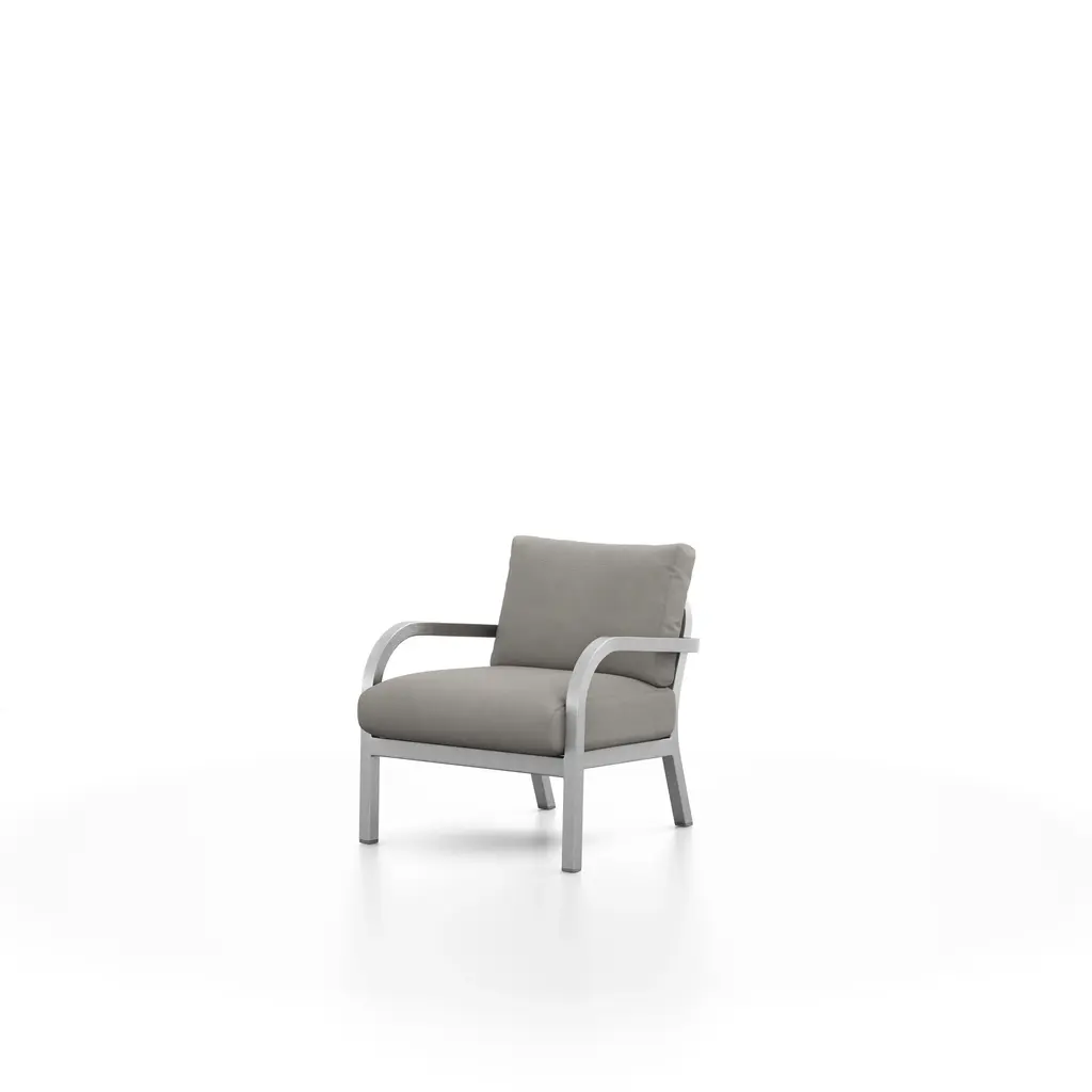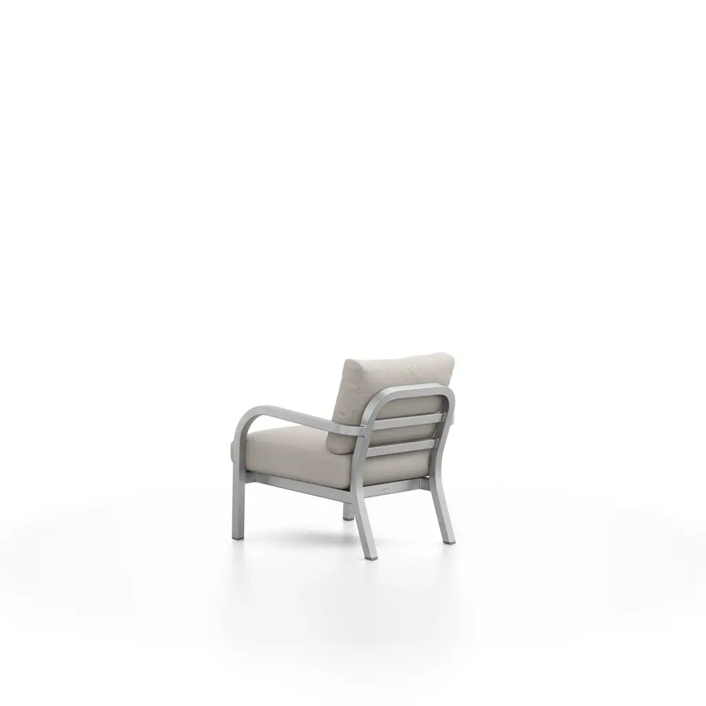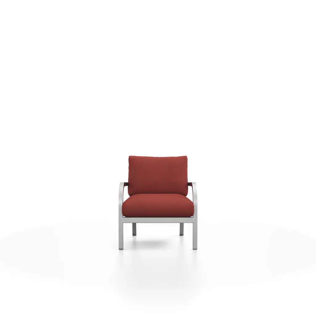 Navy Lounge by Jasper Morrison, 2025 Re-design of Emeco's classic 1940s sofa series, first made for the US Navy. Lightweight, yet extremely durable, lounge armchair for indoor and outdoor use, adaptable to a wide range of settings. The frame in recycled aluminum is handmade by Emeco's craftsmen in Hanover, Pennsylvania, following the same unique process of hand welding and heat treating used since 1944 that makes furniture so strong it comes with a lifetime warranty - in and out. The frame comes in Emeco's signature hand brushed finish with a clear powder coat, or in powder coat colors. Black and White Grey are standard options, Emeco's in-house range of colors also available at no up-charge, no MOQ. Contact us to place your order. Upholstery available in a range of leather, fabric and outdoor textiles. All cushions with Sunbrella Heritage cushion covers are outdoor approved. COM/COL also offered, subject to approval - please contact us to confirm suitability of custom textiles prior to order. Cushions are removable and attach to the frame with snaps and velcro for easy installation, replacement and removal, for storing when not in use. Optional arm caps in solid wood sold separately.
