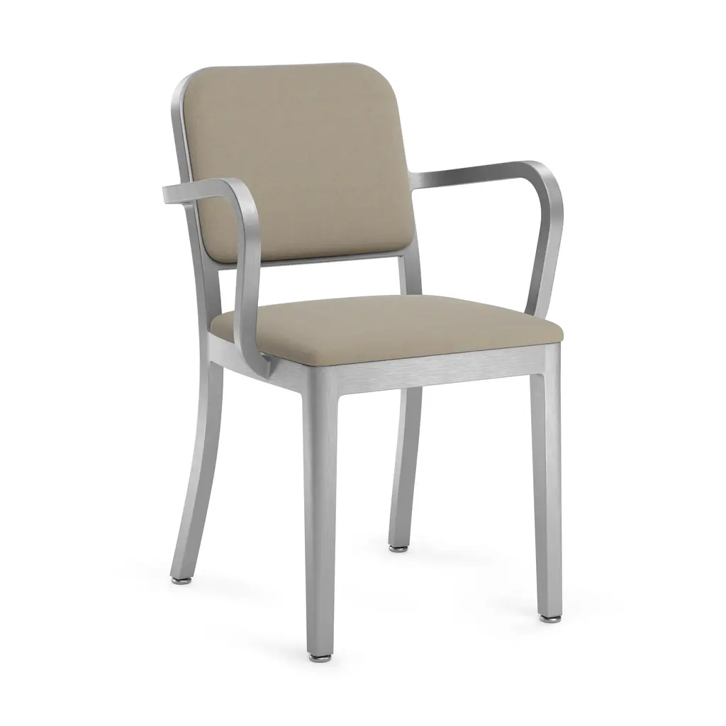 Jasper Morrison has given Emeco’s classic upholstered Navy Officer Collection a fresh, light and modern update. The Navy Officer Collection by Jasper Morrison features a chair, an armchair and swivel chairs, available in hand-brushed aluminum or a black powder coat finish. Upholstery is offered in a selection of Kvadrat and Maharam textiles and leathers. Features