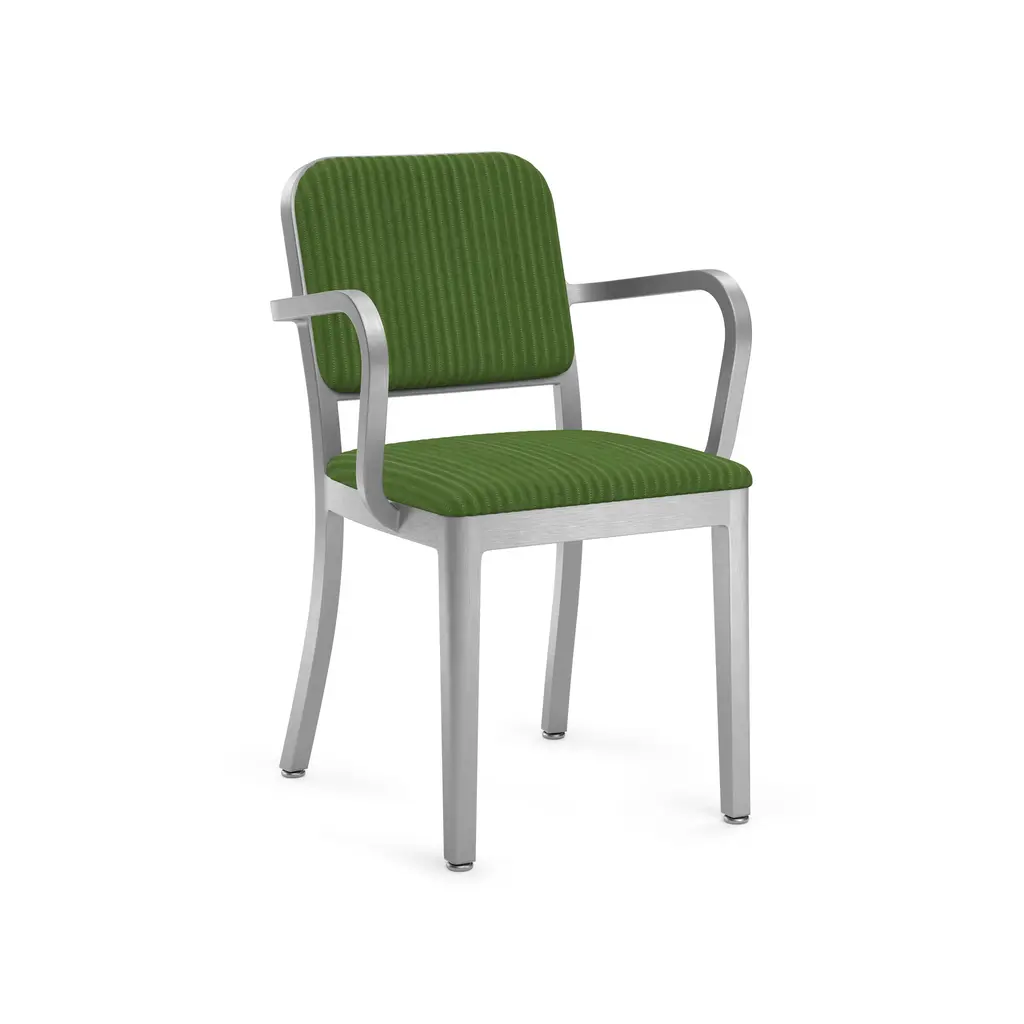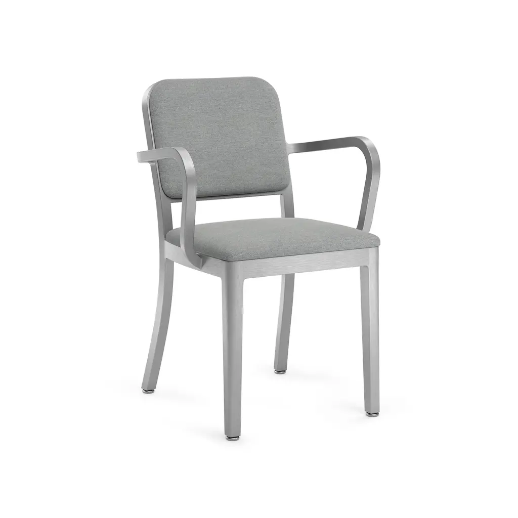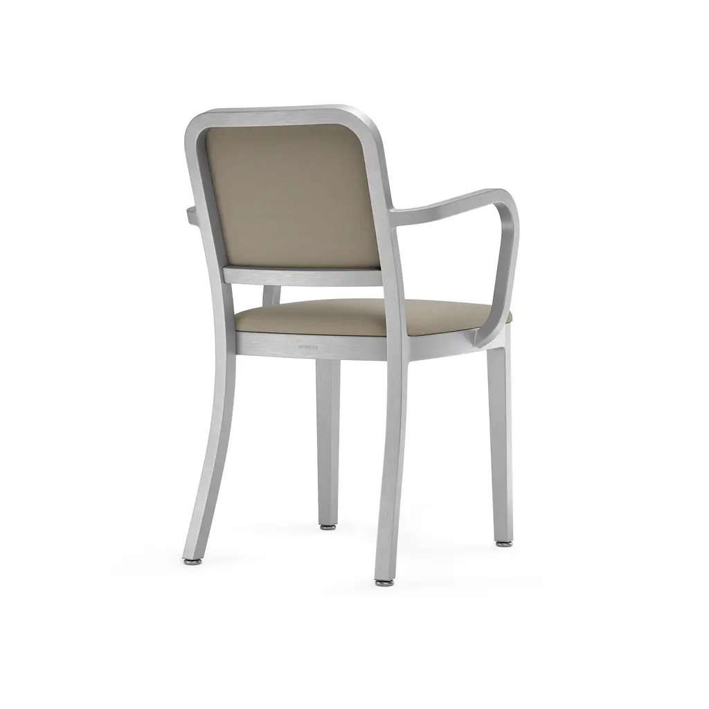 Navy Officer by Jasper Morrison, 2019 Jasper Morrison has given Emeco’s classic upholstered Navy Officer Collection a fresh, light and modern update with a range of upholstery options. The 80% recycled aluminum frame is available in Emeco's signature hand brushed finish or a black powder coat. Emeco's inhouse powder coat colors are available for all Navy Officer chair frames. We also offer COM/COL upholstery. Please contact us for details. The collection also features a side chair, a swivel chair and a swivel armchair. Standard glides: soft plastic TPU glides for all-around use, including outdoor use. Alternative glides available at an upcharge.