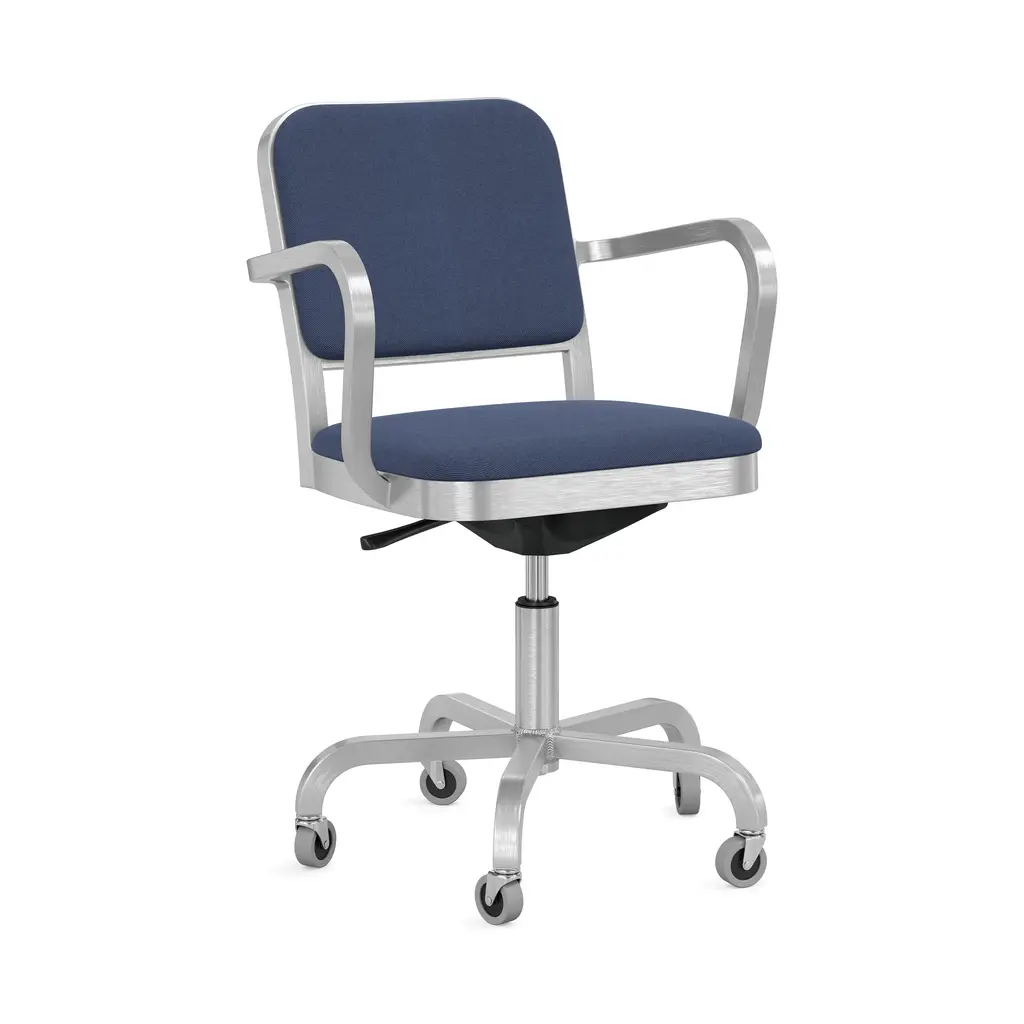 Jasper Morrison has given Emeco’s classic upholstered Navy Officer Collection a fresh, light and modern update. The Navy Officer Collection by Jasper Morrison features a chair, an armchair and swivel chairs, available in hand-brushed aluminum or a black powder coat finish. Upholstery is offered in a selection of Kvadrat and Maharam textiles and leathers. Features