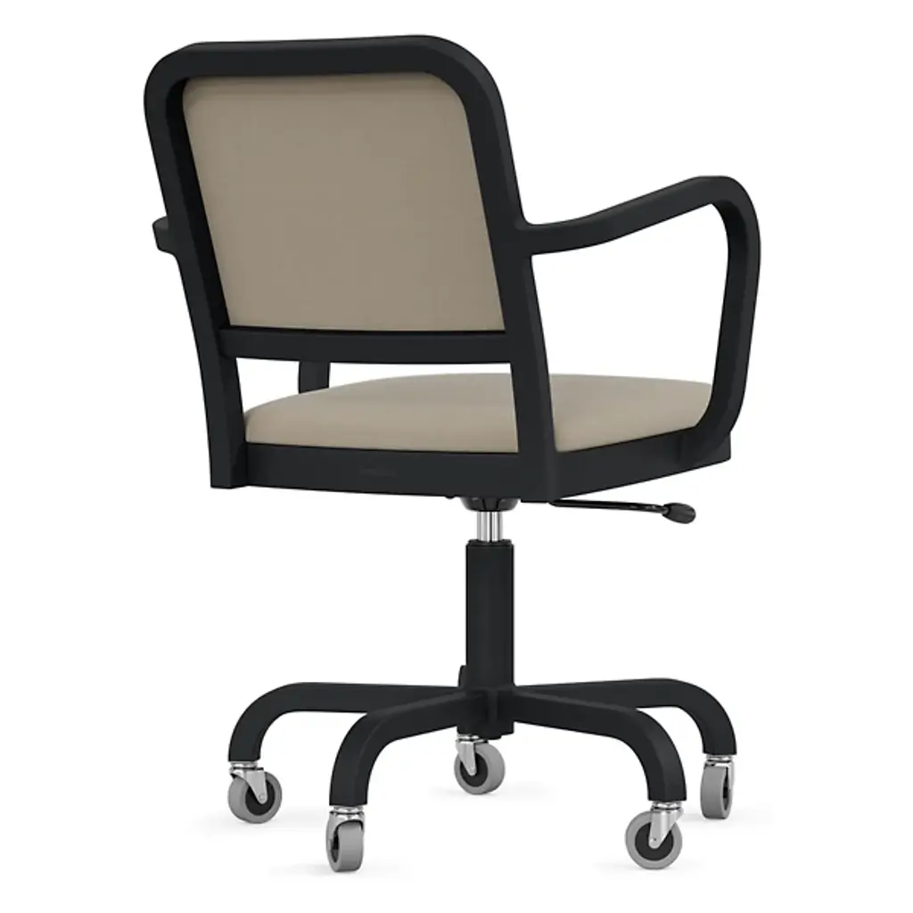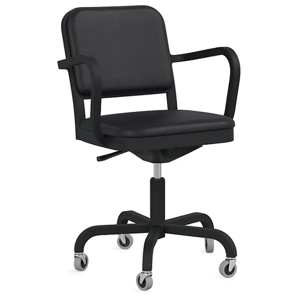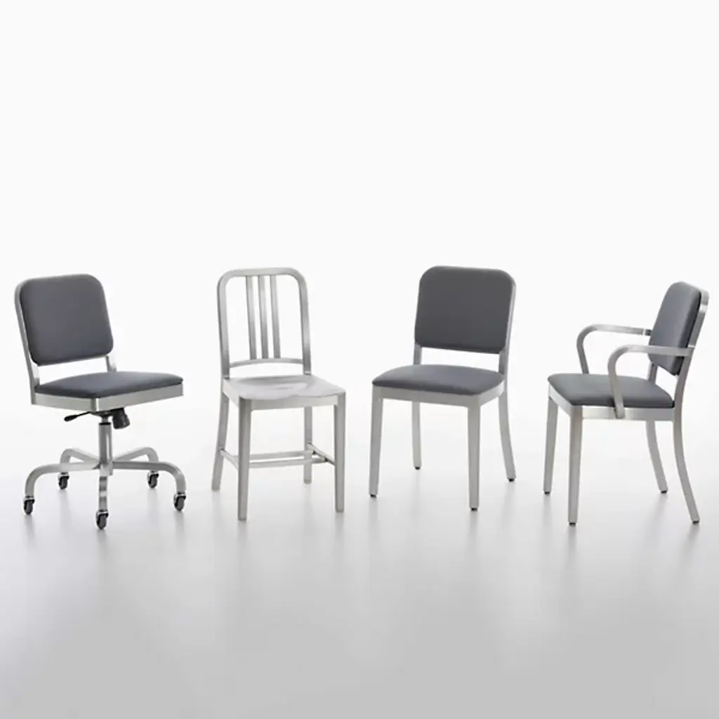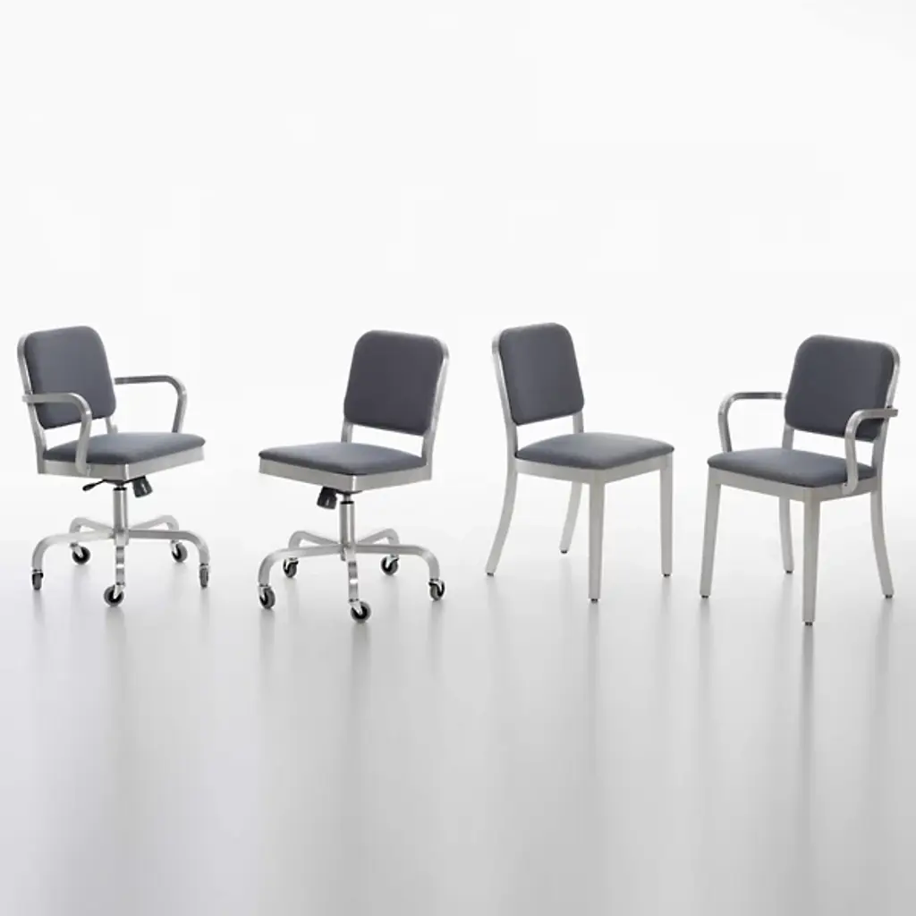 Inspired by the original US Navy design from 1944, The Navy Officer Swivel Armchair from Emeco has been enhanced by designer Jasper Morrison. Made in the USA and featuring an exclusive lifetime warranty on the aluminum frame, the comfortable upholstery and smooth swivel capability take it to another level. This attractive design furnishing will elevate the look of a home office or any sort of workspace with a retro-inspired aesthetic and mindful attention to detail.