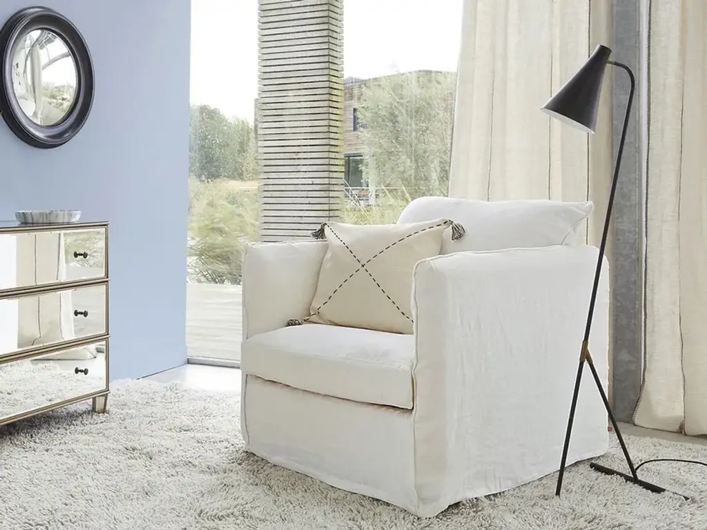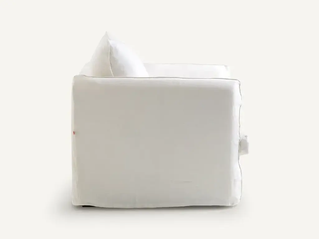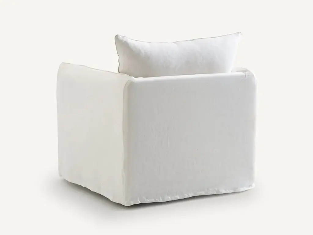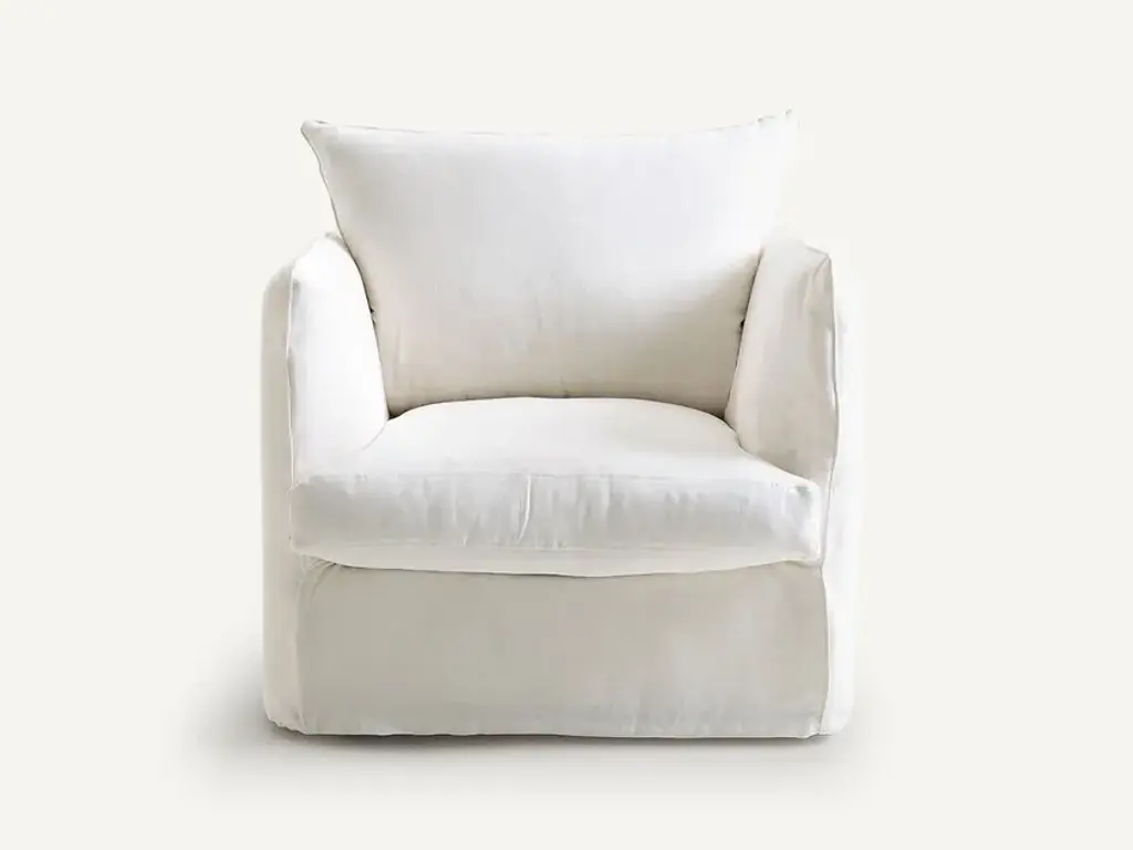 NEO CHIQUITO wrinkled linen armchair with armrests.Features:100% wrinkled linen canvas upholsteryMoldings, tone on toneFabric samples available on the site, type “Neo Chiquito Samples” into the search engineFrame: beech, solid pine and chipboard. PEFC™ certified wood.Crossed elastic straps suspensionBirch legs, nitrocellulosic varnish, height 4 cm
