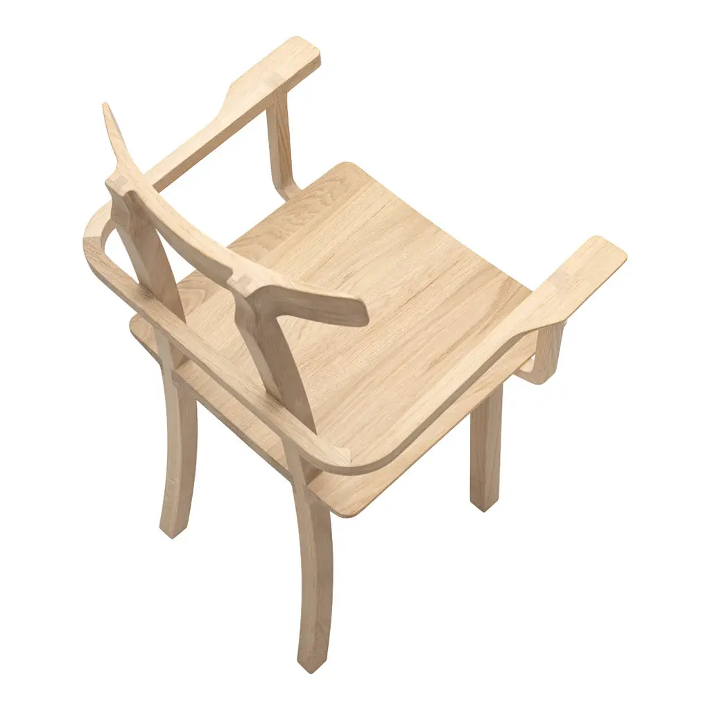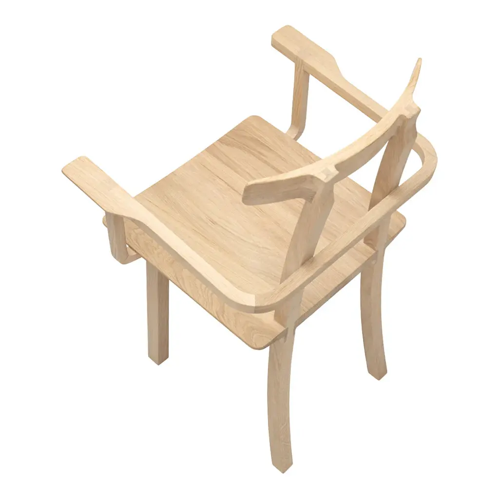 The project is based on traditional chairs typical of the Tyrolean and South Tyrolean area. They have a very interesting feature from a structural point of view: the seat is the key element that unites all the pieces. The “Nervosa" chair formally moves away from that typology but retains its constructive spirit while being made entirely with CNC technology. The material is entirely solid wood, which is perfect for the precision workmanship and mechanical characteristics required by this design. The chair is designed to be made of natural wood but with some aniline-treated variants that still allow the grain to show through.