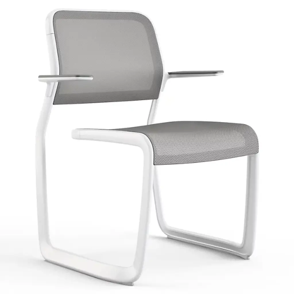 Streamlined with a leading edge aesthetic makes the Newson Armchair a modern and traditional piece. With a tubular steel cast aluminum frame which possesses a more practical and structural form gives the Newson Armchair versatility for all home settings. Features a three high-pressure casting frame with two sled like legs connecting and creating a more dynamic structure with a hand knitted mesh seat and back.