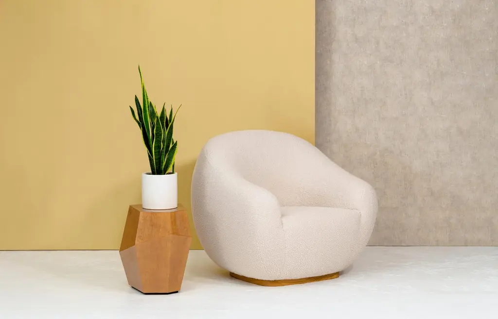 Gold Design Award Winner for Furniture Design Category at the A’Design Award Competition 2021-2022The Niemeyer II armchair is named after the Brazilian Architect Oscar Niemeyer whose Architecture was spread like sculptural poetry in the History of humankind.The rounded lines of the armchair are influenced by the remarkable ‘Casa das Canoas’ designed by Niemeyer in 1951. The flat roof offers its flowing forms to the round seat. The backward movement of the curve that frames a large granite boulder is recreated by the location of the seams in a meticulous upholstered work that flows all around the arms of the armchair. Niemeyer II is a modern armchair upholstered in a bouclé with a sense of luxury and comfort.Product detailsUpholstery: InsidherLand Woollen ref. 1Base: oak finished in matt varnish.Product optionsUpholstery: InsidherLand fabrics or client fabric.Base: other woods or any Ral Classic color finished in matt, half gloss or high gloss varnish.COM: 5m 196,62in. (Standard width 140cm 55in.)Weight 42Kg 92.6 lbs Made to order. Custom sizes and other finishes are available under request.Designed by Joana Santos Barbosa, 2019. Handmade in Portugal.
