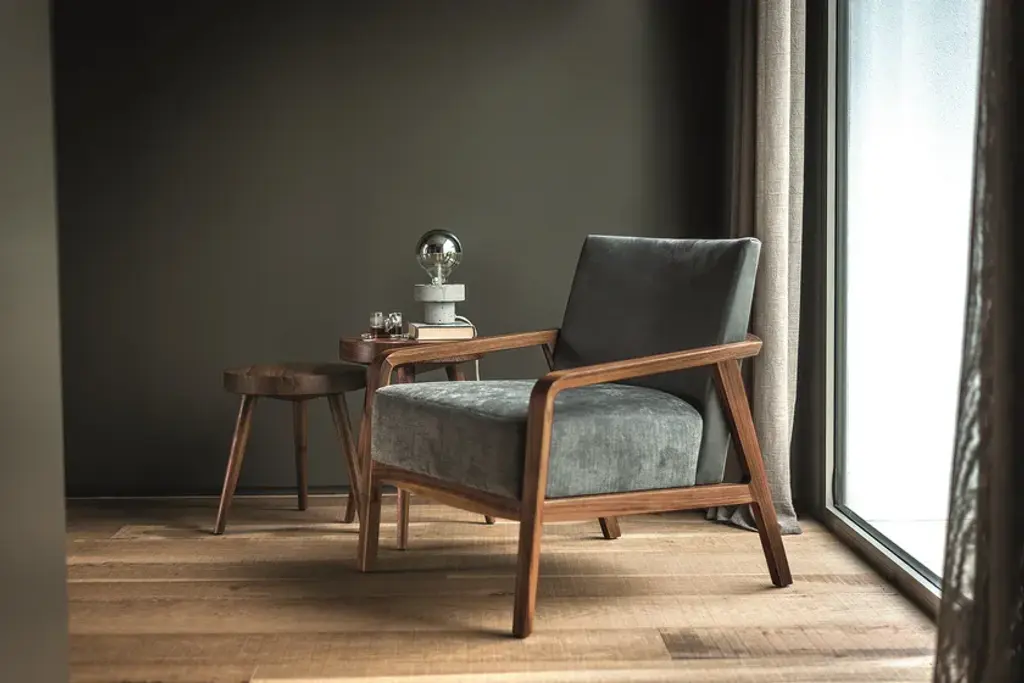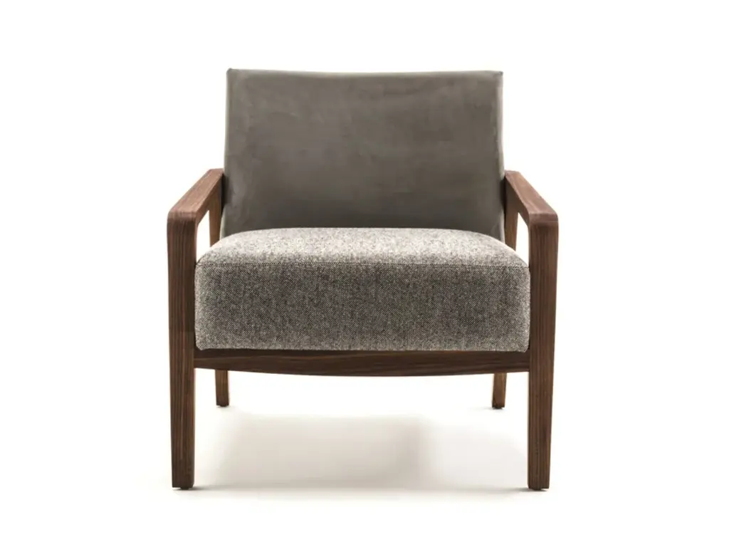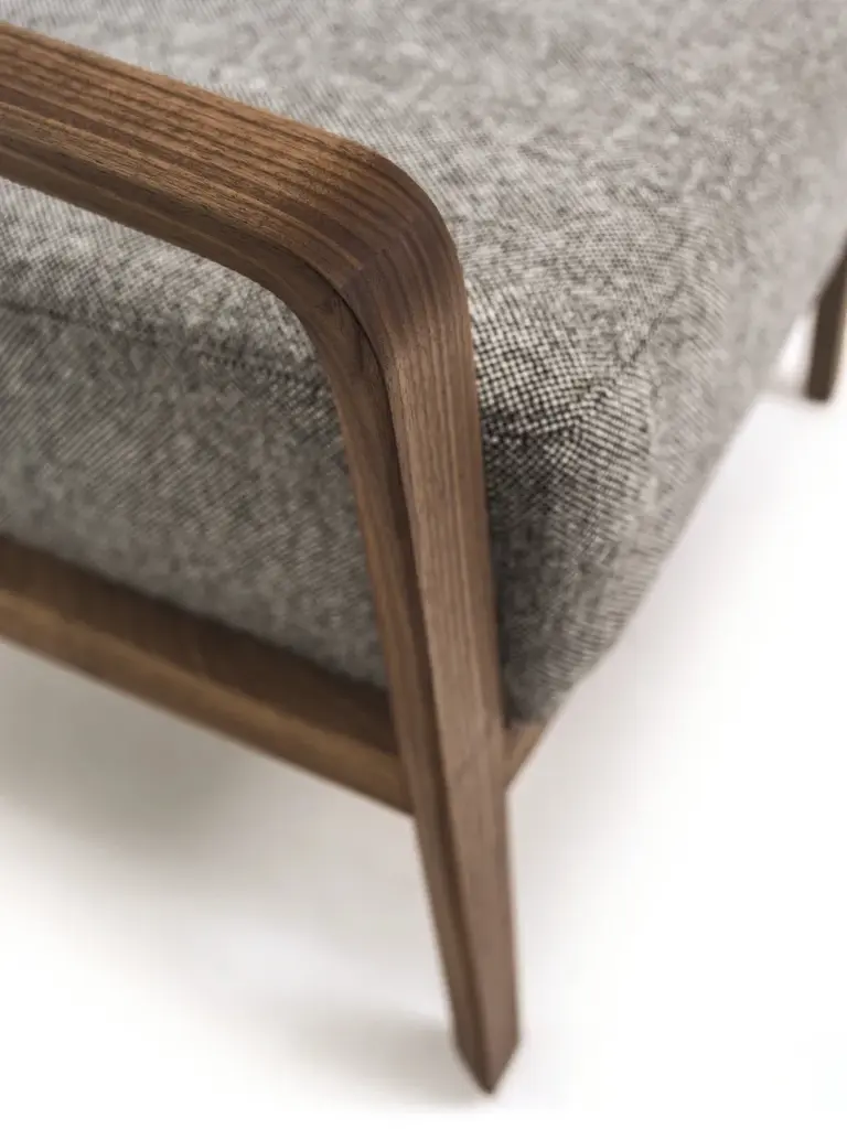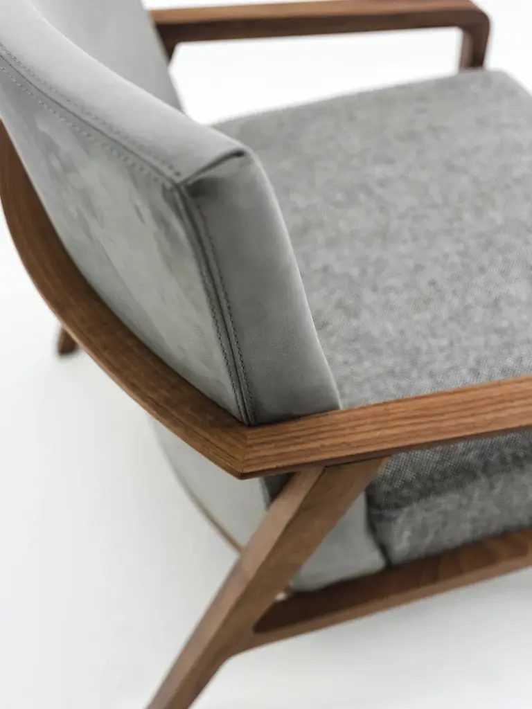 NOBLÈ ARMCHAIR is an armchair with solid wood structure, with backrest and comfortable padded seat, upholstered in leather or fabric with visible stitching.AVAILABLE FINISHES:A1: walnut without knotsA2: knotless oak, cherryA4: knotless oak pigmented: milk white, total blackAVAILABLE FINISHES - BACKREST CUSHIOND1: fabric: canvas, divina melange 2, hallingdal 65, harald velvet, bouclè, milano M107, tokyo M115D3: leather: suede, crystalD4: leather: nubuck, utahD6: customer leather, customer fabricAVAILABLE FINISHES - SEAT CUSHIOND1: fabric: canvas, divina melange 2, hallingdal 65, harald velvet, bouclè, milano M107, tokyo M115D2: fabric: mapleD3: leather: suede, crystalD4: leather: nubuck, utahD6: customer leather, customer fabric