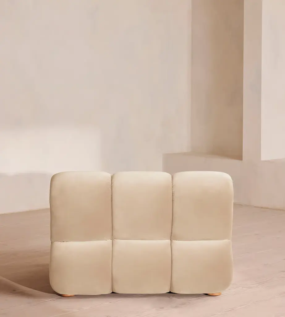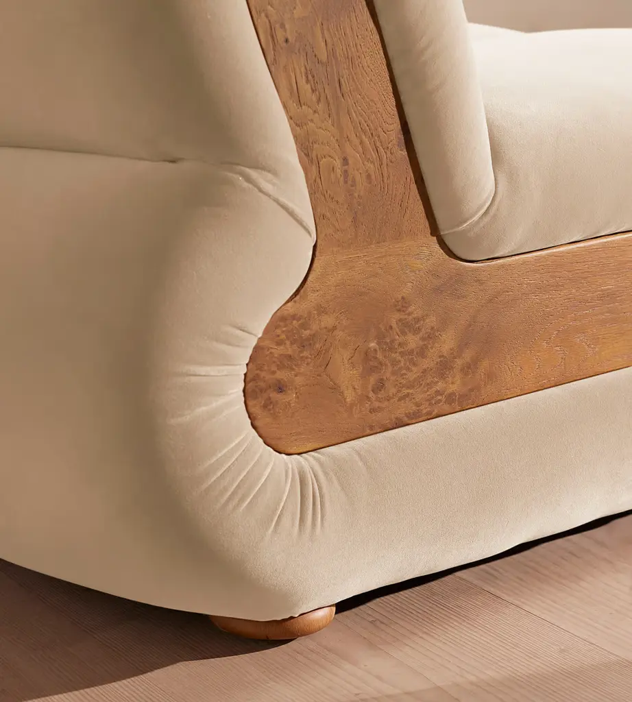 Designed to adapt to any living space, the Noelle modular sofa comprises of straight and curved modules to create the shape you desire, or alternatively a generous armchair if used alone. Rich velvet upholstery is complemented with aged Pippy Oak veneer sides that have a burl finish, while its statement curved shape takes its design cues from the 1970s interiors of 180 House.