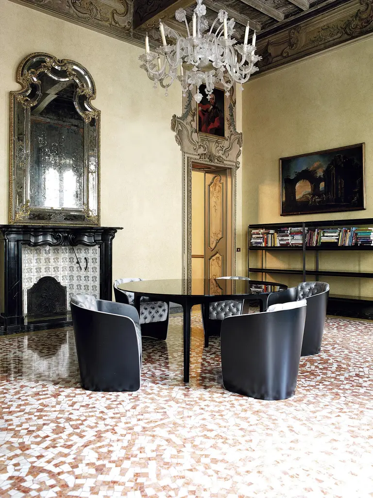 Multi-layered, curved, wood frame available in veneered rosewood or mat lacquered. New finishing 2010 outer covering in stainless steel. Padding in shape retaining polyurethane with a density of 30. Upholstery covering in either capitonnè or smooth.Carlo Colombo is considered one of the most important Italian architects and designers. He started his career right away with designing for top level brands. From this moment he collects hundreds of collaborations with the most important brands of design made in Italy like Antonio Lupi, Arflex, Artemide, Cappellini, De Padova, FLOU, Flexform, iGuzzini, Moroso, Poliform, Poltrona Frau, Teuco, Varenna, Zanotta, just to mention some. Beyond the design of products and furniture, Colombo also takes care of strategy and marketing for the companies, develops graphic projects and curates exhibitions, works as a consultant and Art Director. The work that initially was concentrated on design and interior, extends progressively also in the field of constructions in Italy and abroad. In 2004 the architect is awarded as designer of the year; in 2009 wins an international competition for the design of the two multifunctional towers in Abu Dhabi and from 2011 teaches design at the De Tao Masters Academy of Beijing in China. He receives a lot more awards all-over the world, amongst them the Elle Decor International Design Award in 2005, 2008, 2010, 2011, the Good Design Award of the European Centre for Architecture Art Design and the Chicago Athenaeumin in 2009, in 2012 he wins the Red Dot Design Award, in 2014 wins the “Best of the Best” Red Dot Design Award, the Interior Innovation Award, the Design London Award and the iF design award with Teuco. Today the studio deals with projects in large-scale all-over the world, from design to interior as well as architecture.