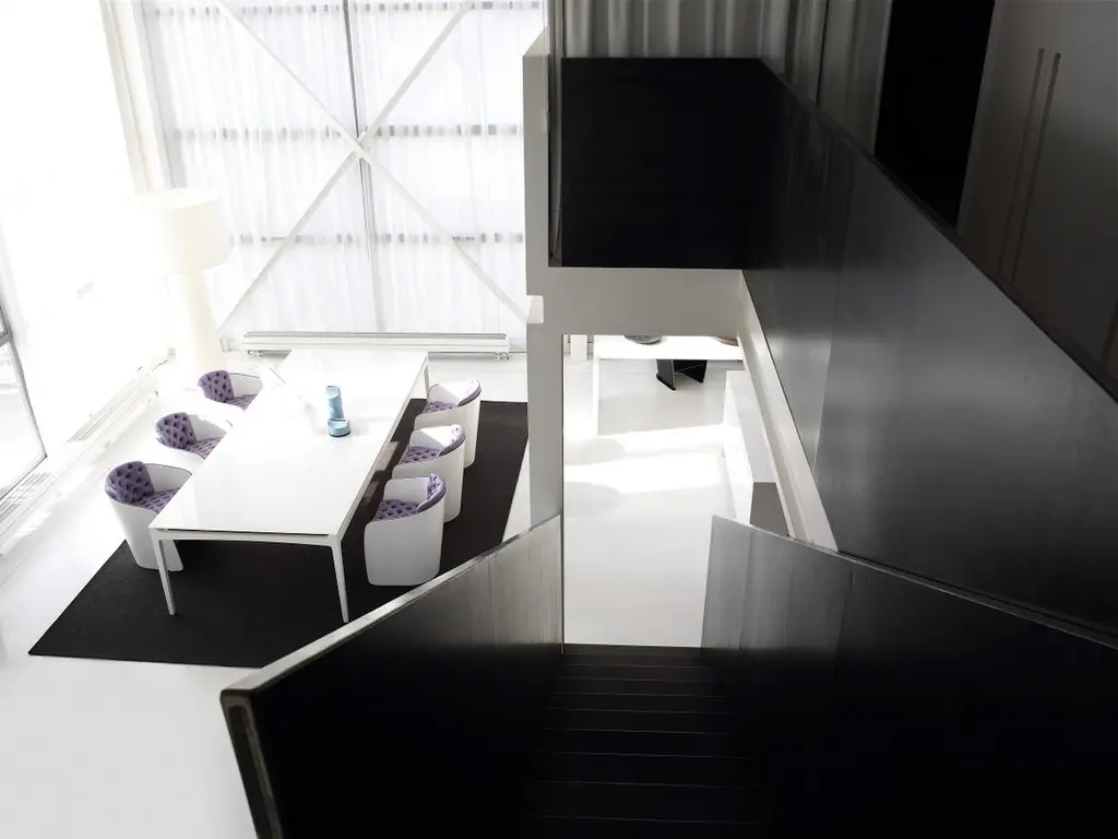 "Multi-layered, curved, wood frame available in veneered rosewood or mat lacquered. New finishing 2010 outer covering in stainless steel. Padding in shape retaining polyurethane with a density of 30. Upholstery covering in either capitonnè or smooth.Carlo Colombo is considered one of the most important Italian architects and designers. He started his career right away with designing for top level brands. From this moment he collects hundreds of collaborations with the most important brands of design made in Italy like Antonio Lupi, Arflex, Artemide, Cappellini, De Padova, Flou, Flexform, iGuzzini, Moroso, Poliform, Poltrona Frau, Teuco, Varenna, Zanotta, just to mention some. Beyond the design of products and furniture, Colombo also takes care of strategy and marketing for the companies, develops graphic projects and curates exhibitions, works as a consultant and Art Director. The work that initially was concentrated on design and interior, extends progressively also in the field of constructions in Italy and abroad. In 2004 the architect is awarded as designer of the year; in 2009 wins an international competition for the design of the two multifunctional towers in Abu Dhabi and from 2011 teaches design at the De Tao Masters Academy of Beijing in China. He receives a lot more awards all over the world, amongst them the Elle Decor International Design Award in 2005, 2008, 2010, 2011, the Good Design Award of the European Centre for Architecture Art Design and the Chicago Athenaeumin in 2009, in 2012 he wins the Red Dot Design Award, in 2014 wins the “Best of the Best” Red Dot Design Award, the Interior Innovation Award, the Design London Award and the iF design award with Teuco. Today the studio deals with projects in large scale all over the world, from design to interior as well as architecture.