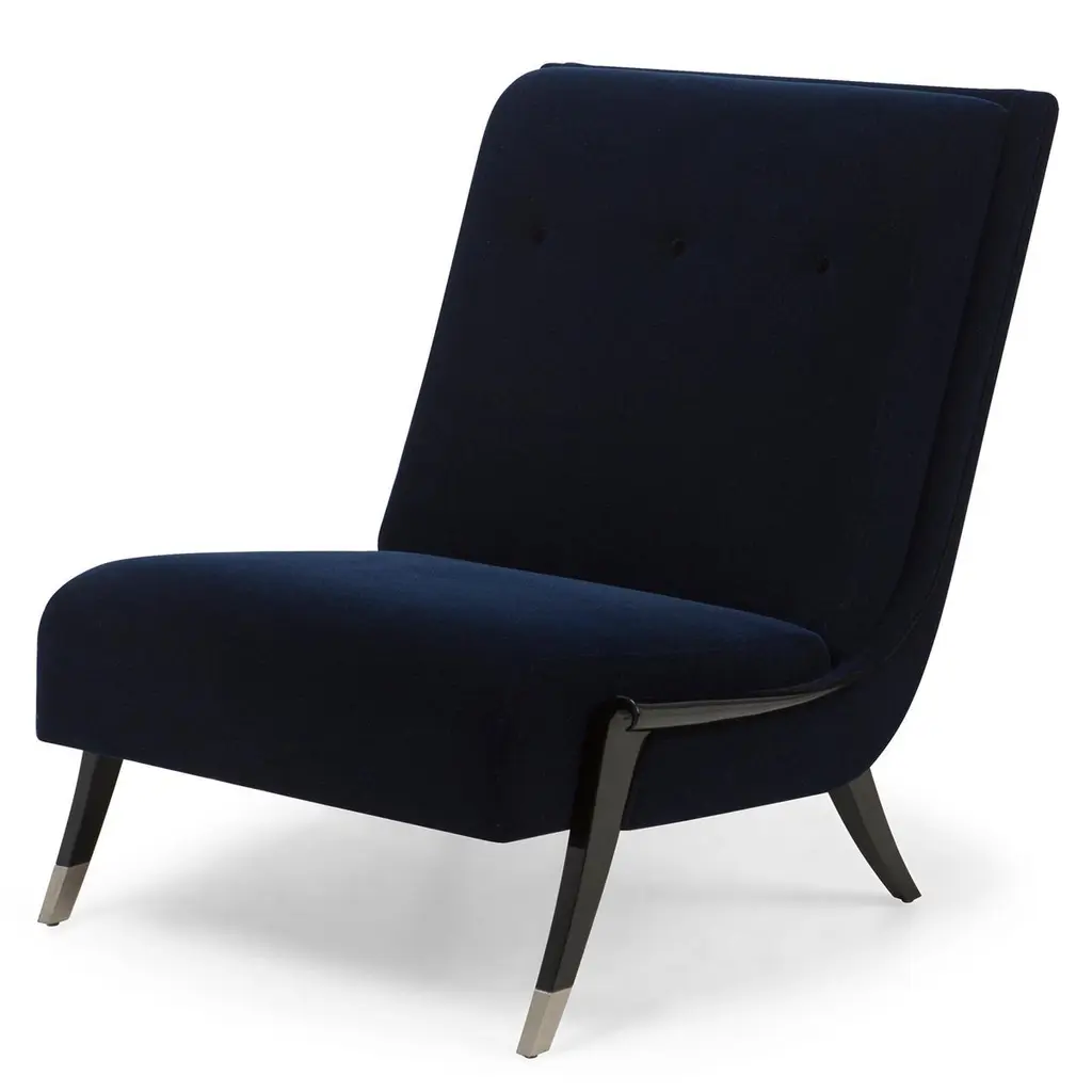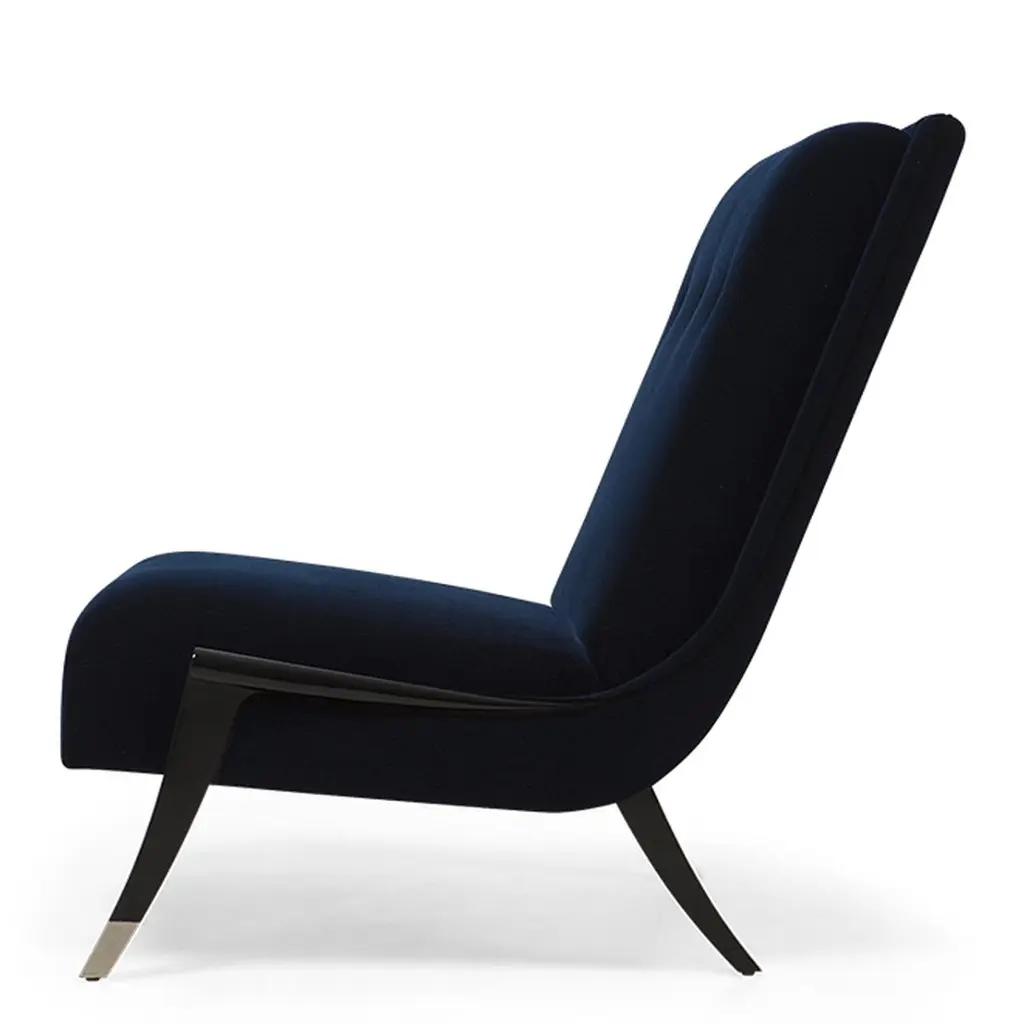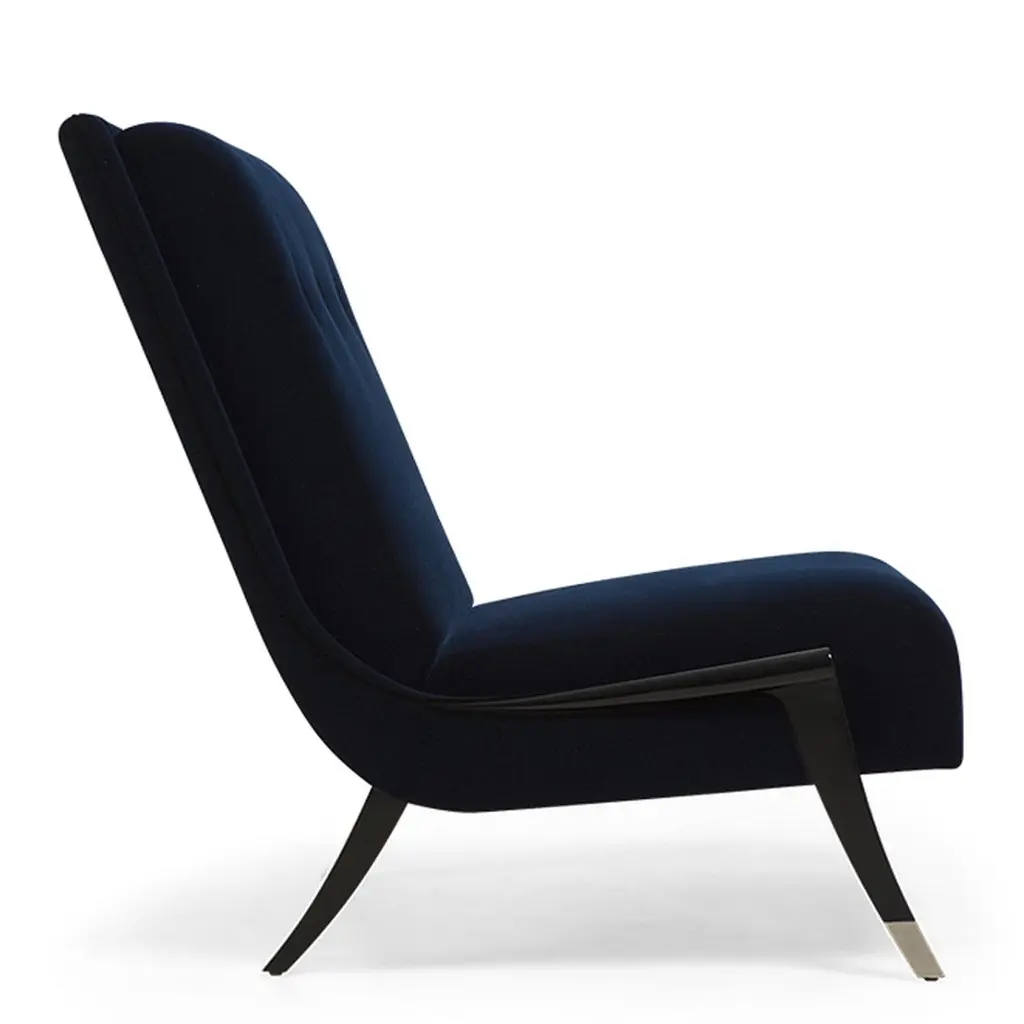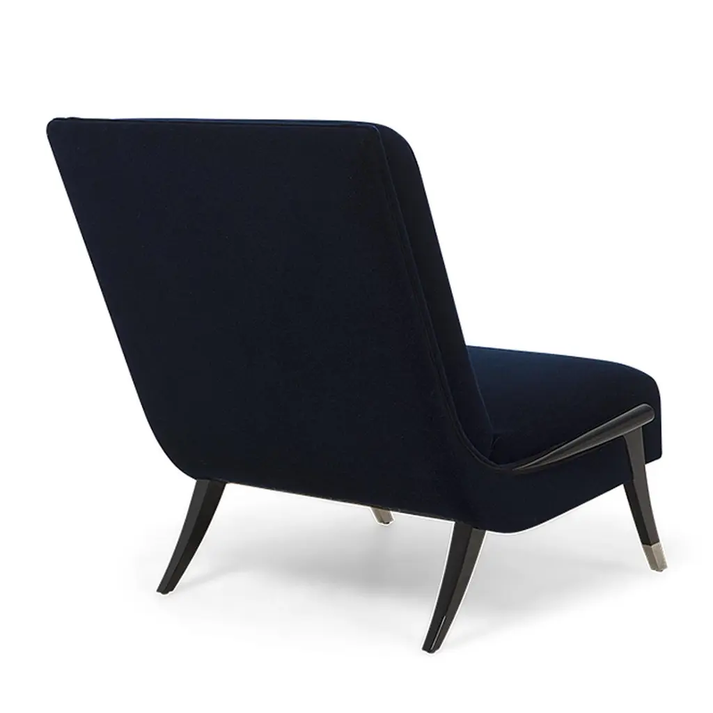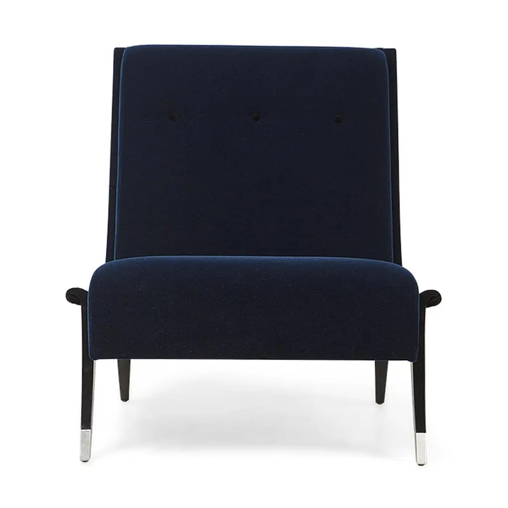 Chair circled with structure in handcrafted black finishveneer mahogany wood. With high quality blue fabric.Also available with others fabrics on request.