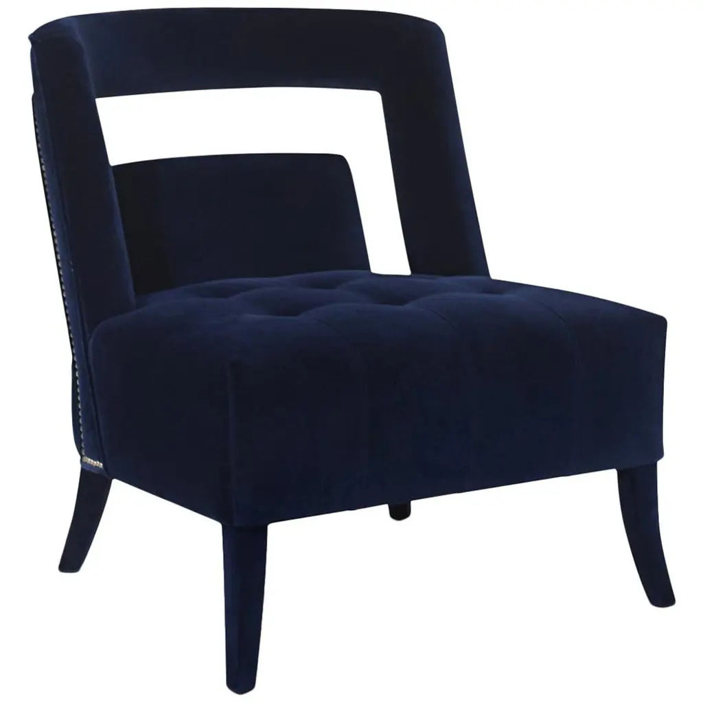 Oackland Armchair With Mahogany Structure And High Quality Blue Fabric