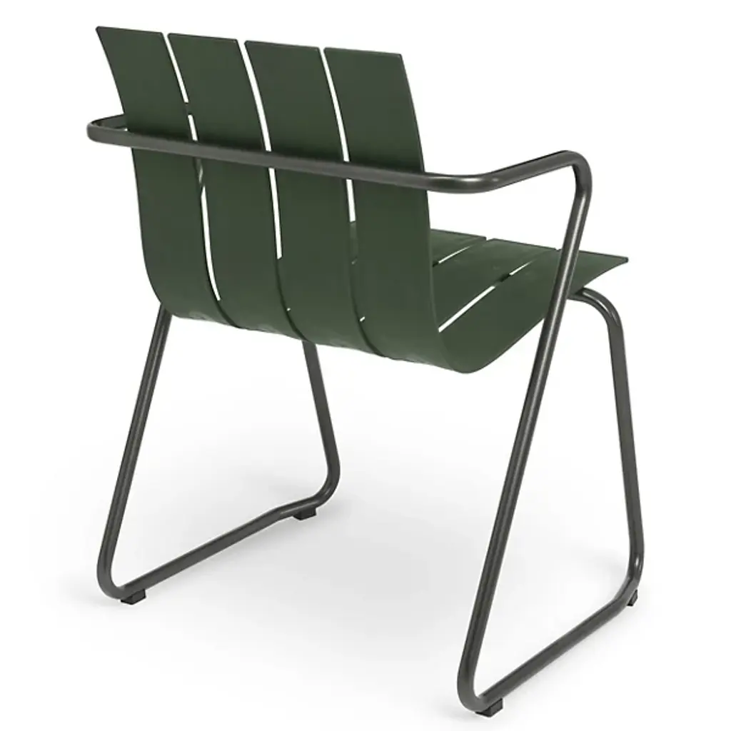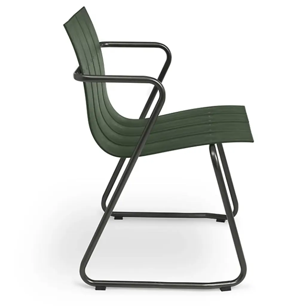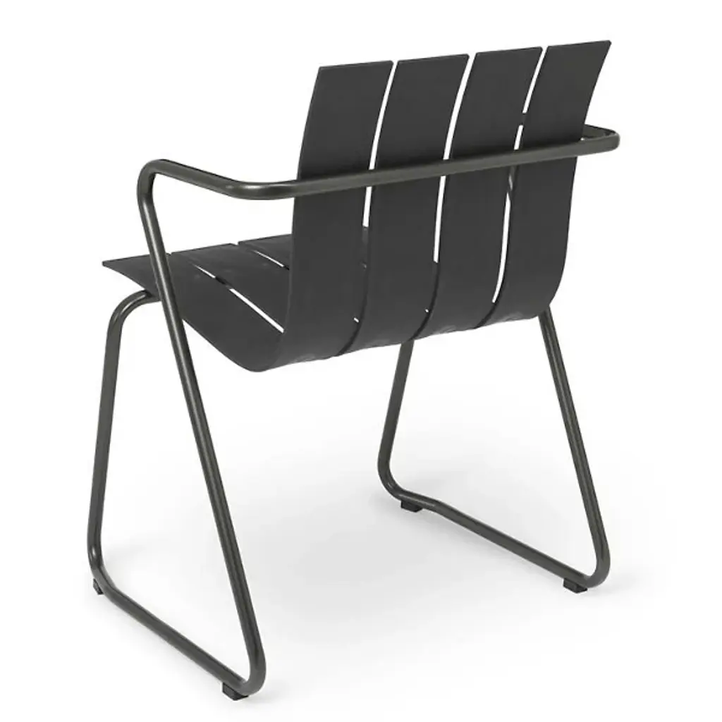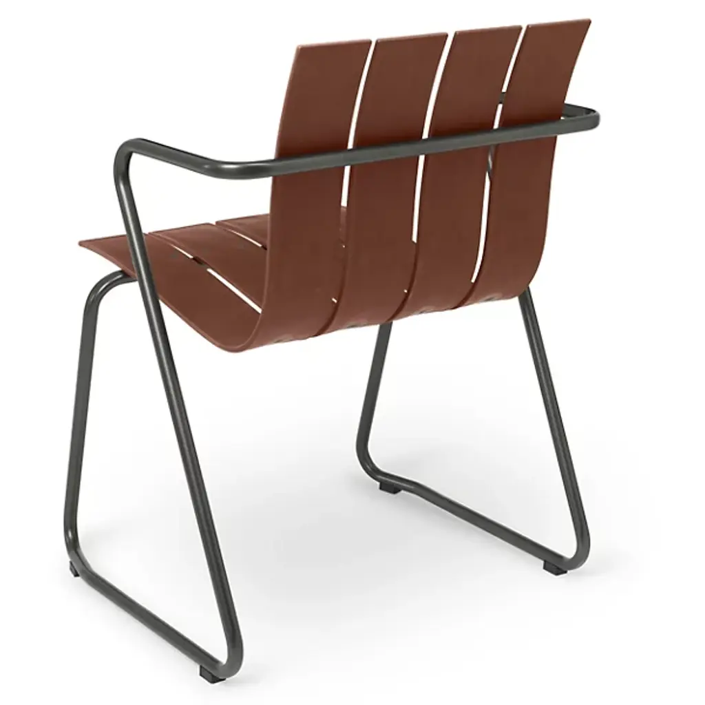 A Jørgen & Nanna Ditzel classic revived for the health of our oceans. A seat on the Ocean Outdoor Armchair doesn't just bring a sense of comfort and sophistication, it fires up our push for positive change by giving new life to discarded fishnets. Mater tapped Jørgen & Nanna Ditzel's iconic 1955 piece to give form to the innovative material. The Ditzel family echoed Nana Ditzel's studies in new materials, making this a piece that would have surely satisfied her. The chair follows the formula of the original, presenting a clean, coastal aesthetic highlighted by a wavy back and seat rest. This flowing slatted design showcases the recycled plastic material. To reach its moldable state, engineers take fishnets that would often be scattered across our seas, cleans and processes them, then transforms them into moldable pellets. The durable plastic rests gracefully over a light yet sturdy steel frame, inviting a comfortable seating posture that looks good from any angle.
