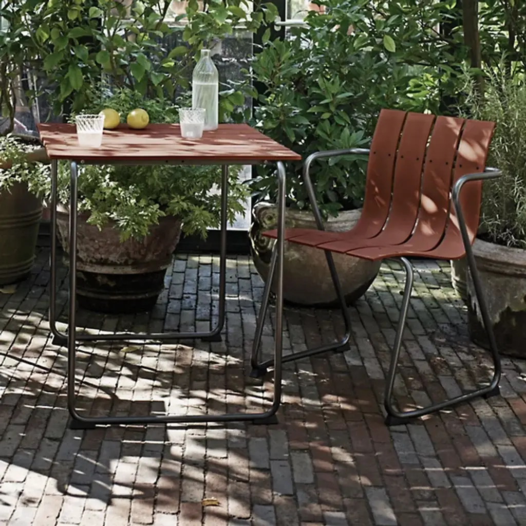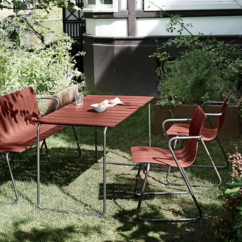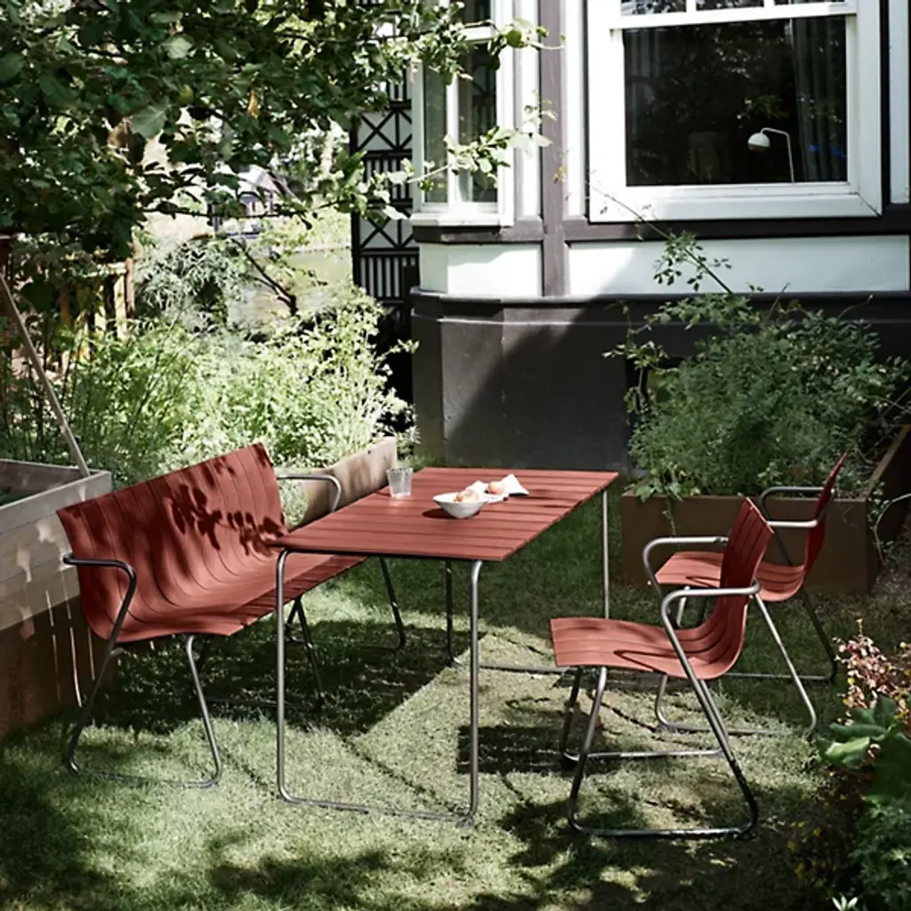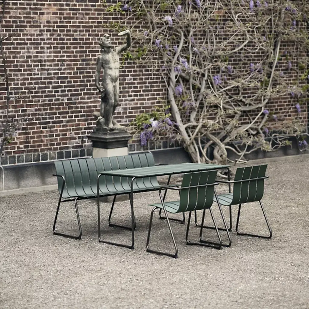 A Jørgen & Nanna Ditzel classic revived for the health of our oceans. A seat on the Ocean Outdoor Armchair doesn't just bring a sense of comfort and sophistication, it fires up our push for positive change by giving new life to discarded fishnets. Mater tapped Jørgen & Nanna Ditzel's iconic 1955 piece to give form to the innovative material. The Ditzel family echoed Nana Ditzel's studies in new materials, making this a piece that would have surely satisfied her. The chair follows the formula of the original, presenting a clean, coastal aesthetic highlighted by a wavy back and seat rest. This flowing slatted design showcases the recycled plastic material. To reach its moldable state, engineers take fishnets that would often be scattered across our seas, cleans and processes them, then transforms them into moldable pellets. The durable plastic rests gracefully over a light yet sturdy steel frame, inviting a comfortable seating posture that looks good from any angle.